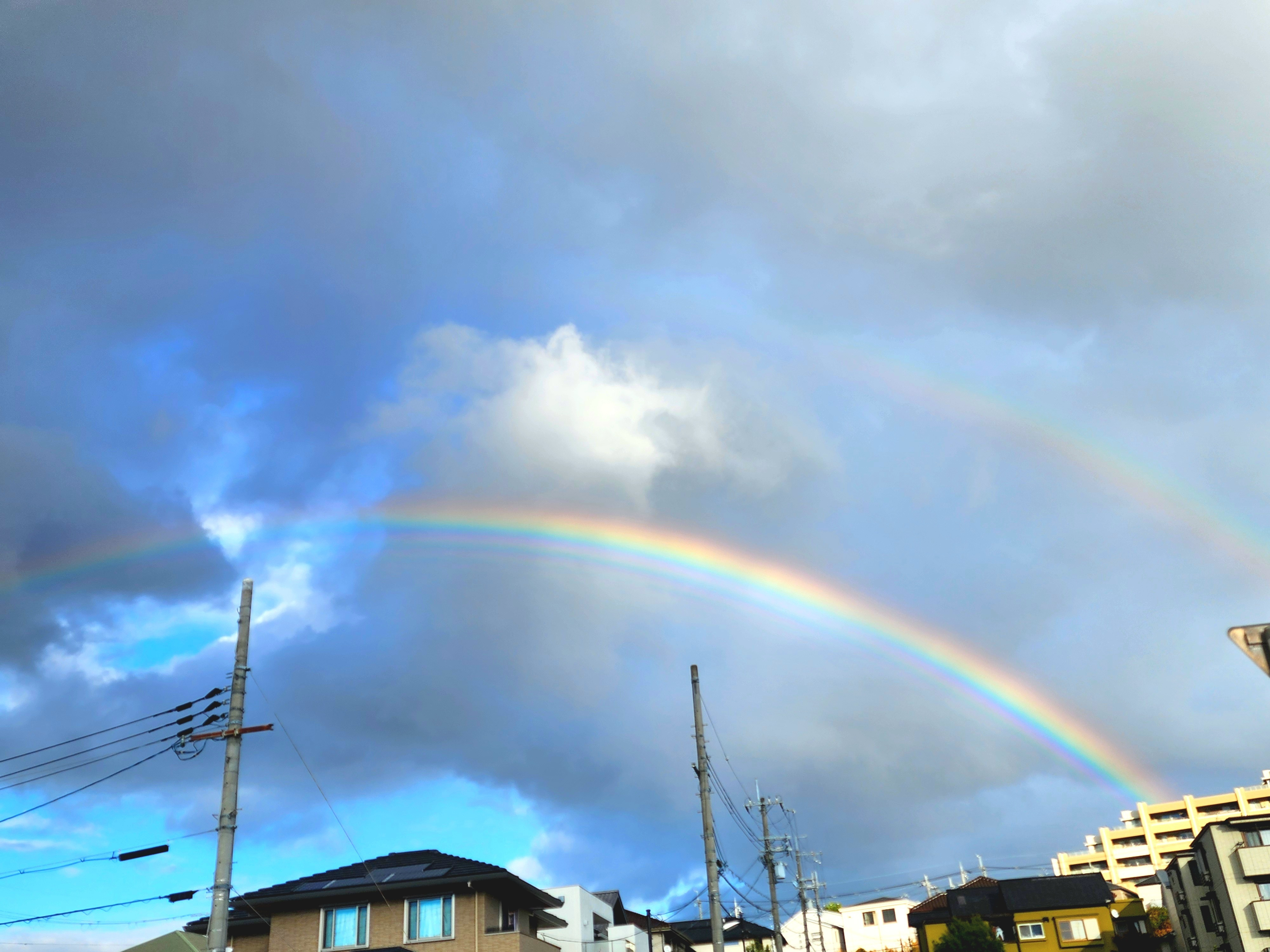 散歩の途中に空を見上げたら大きなダブルレインボー🌈🌈
