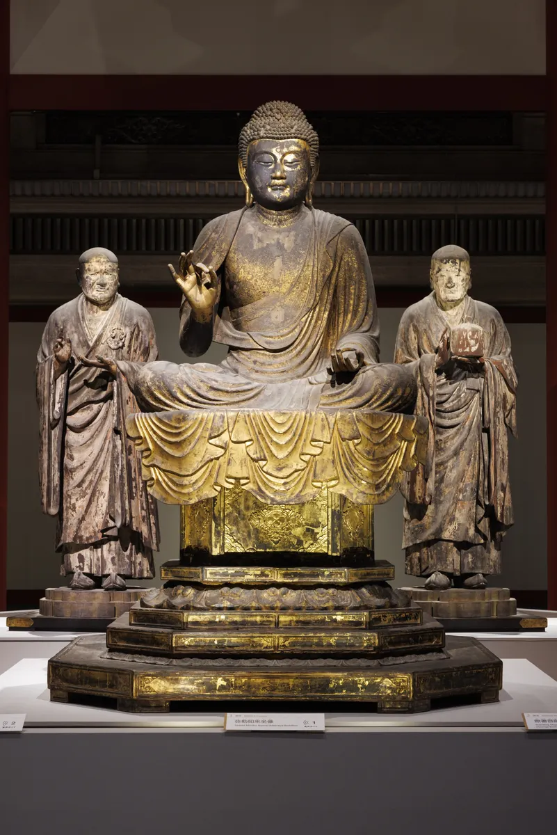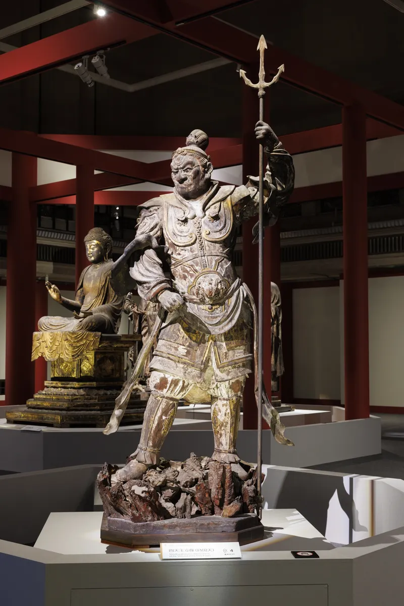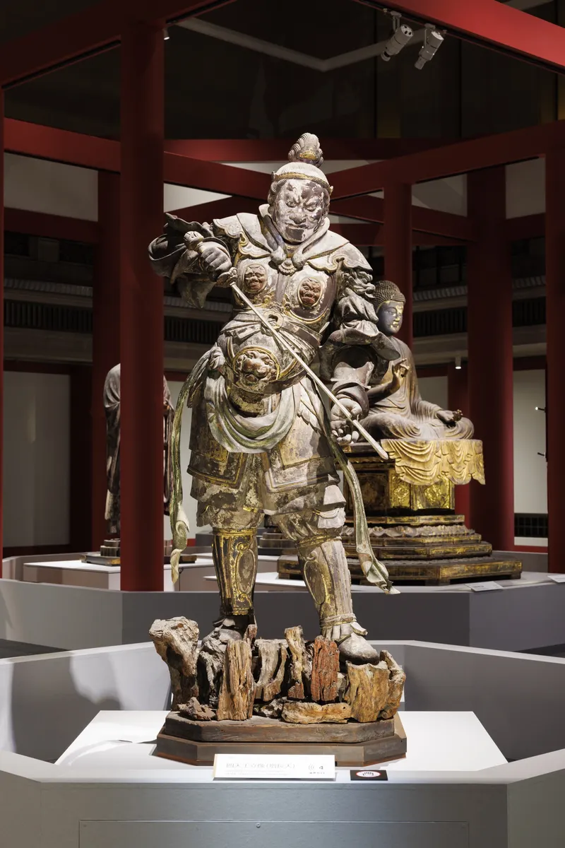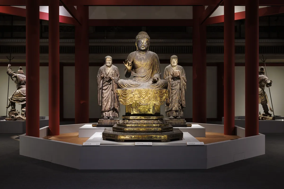 本展は、弥勒如来坐像、無著・世親菩薩立像に加えて、かつて北円堂に安置されていた可能性の高い四天王立像を合わせた7軀の国宝仏を一堂に展示し、鎌倉復興当時の北円堂内陣の再現を試みる奇跡的な企画です。国宝7軀のみで構成された至高の空間をご堪能ください。(東京国立博物館公式HPより引用)