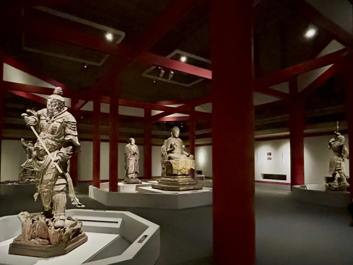 白熱灯による間接照明による演出なので、掲載しました公式画像よりも実際の空間はもっと薄暗く感じて、仏像の玉眼がキラッと光る仕掛けになっています。