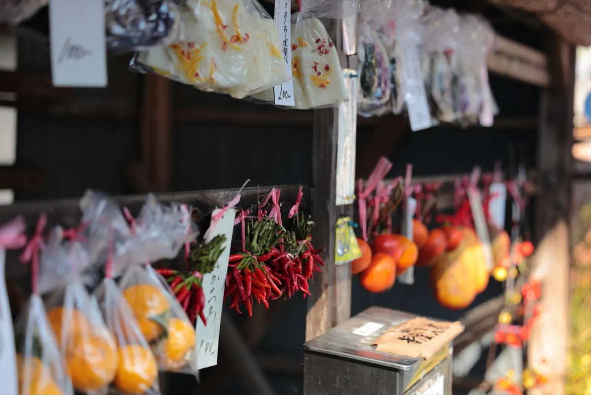 9. 門前には無人販売の野菜が売ってました。前回、帰りに買って帰ろうとしたらすべて売り切れていたので、先に買って車に積んでおきました。