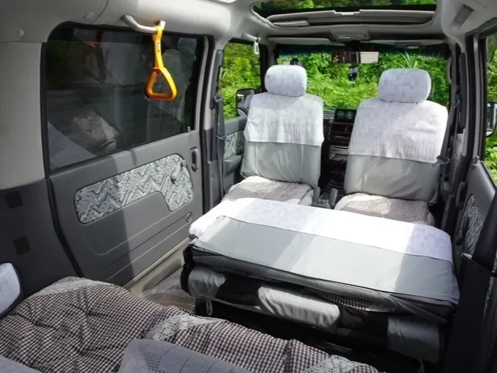 ドミンゴ自慢のシートアレンジを使えば室内高も余裕な涼しい車内で着替えも休憩も車中泊もバッチリ!