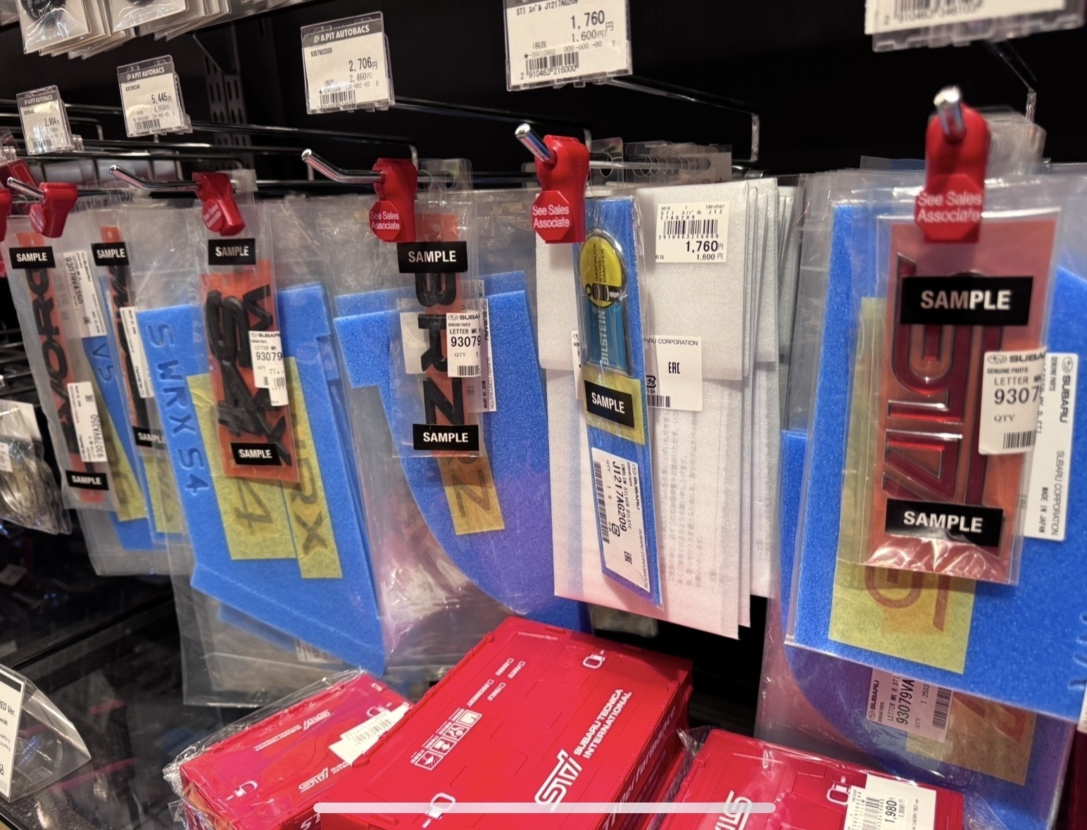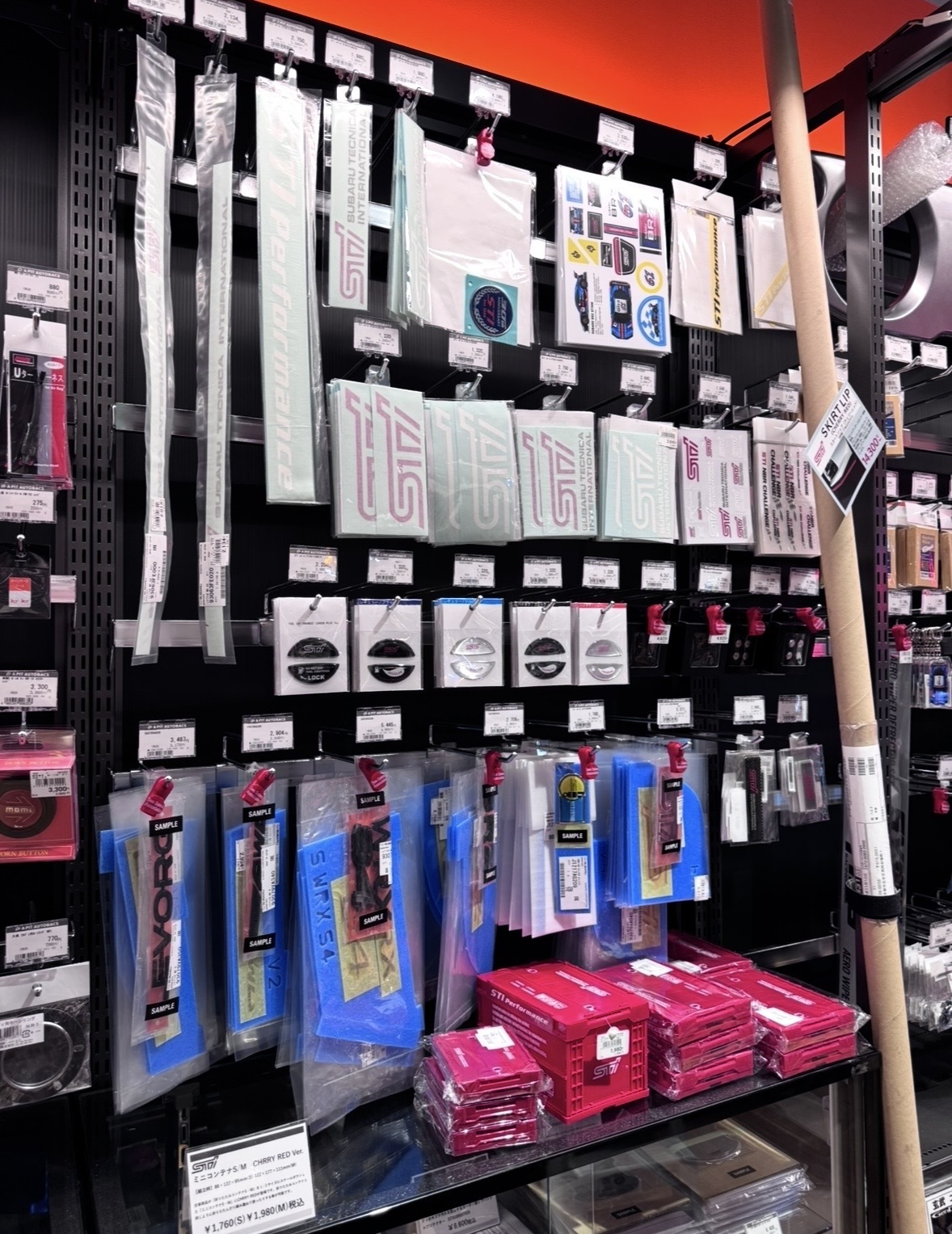 イベント自体は不発で残念でしたが、A PIT自体は何度来てもすごい。STIのエンブレムやらラスターブラック仕様の車名エンブレムやら、普段オンラインでしか見れないものが普通に常設販売されてます。今年の大阪オートメッセよりスバル品の種類が豊富。PROVAはもちろんブリッツやHKSなどのカスタムパーツも品揃え豊富ですごい。