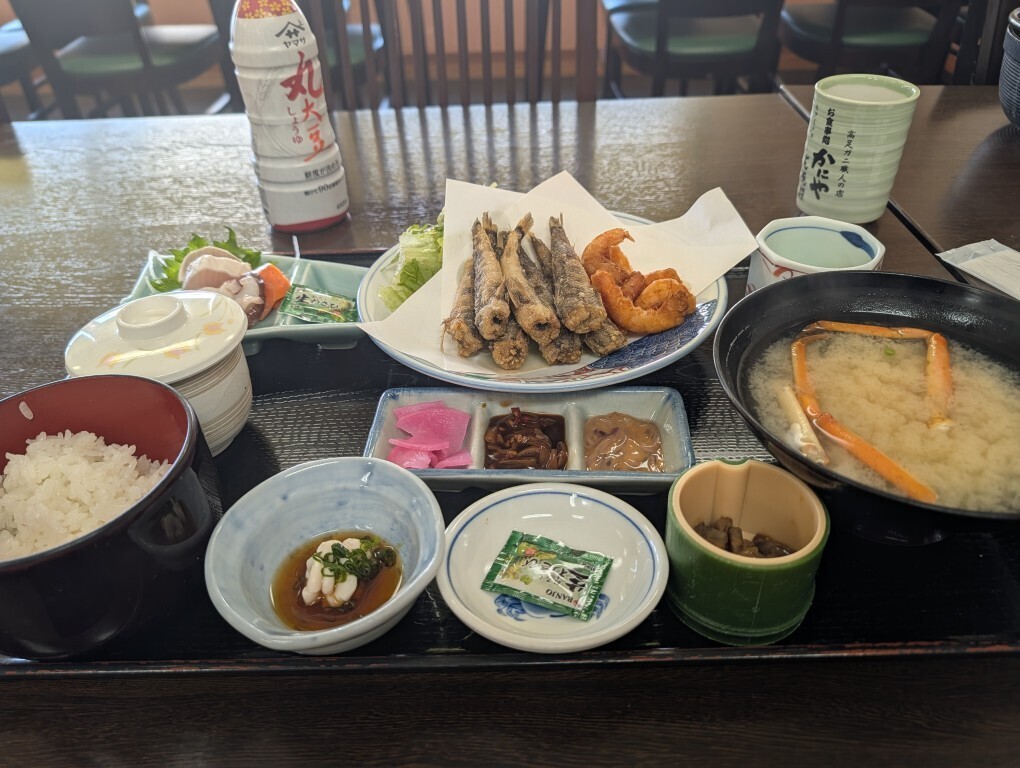 ゴール後に戸田の町中まで戻って名物料理の深海魚のフライ定食をいただきました。