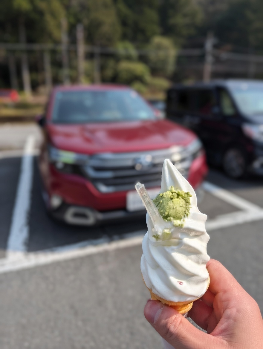 帰りに道の駅天城越えに寄ってわさびソフトをいただきました。