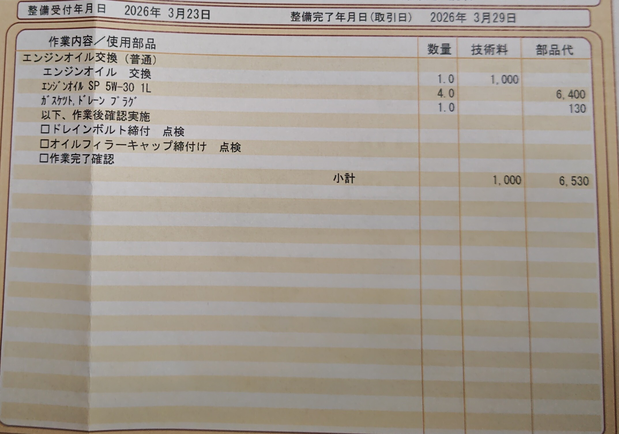トップ > その他 > オイル交換 BP5-2006 2026/03/29 22:47 オイル交換 5,000kmを超えたので、ディーラーで交換して もらいました。 前回交換からの記録… •5ヶ月ちょっと(半年持たなかったなぁ...) •距離:5,651km、燃費:11.2km/L ベーシックオイルなので、今まで入っていた カストロールよりエンジン音は少し荒い。 あとやっぱりディーラーは高いですね(^_^;) (前回シフトノブ取ってもらったお礼の意味での 依頼なので、仕方ないですね) いいね 共有する 共有する X facebook LINE リンクをコピー コメントする 0 件の返信 (新着順)
