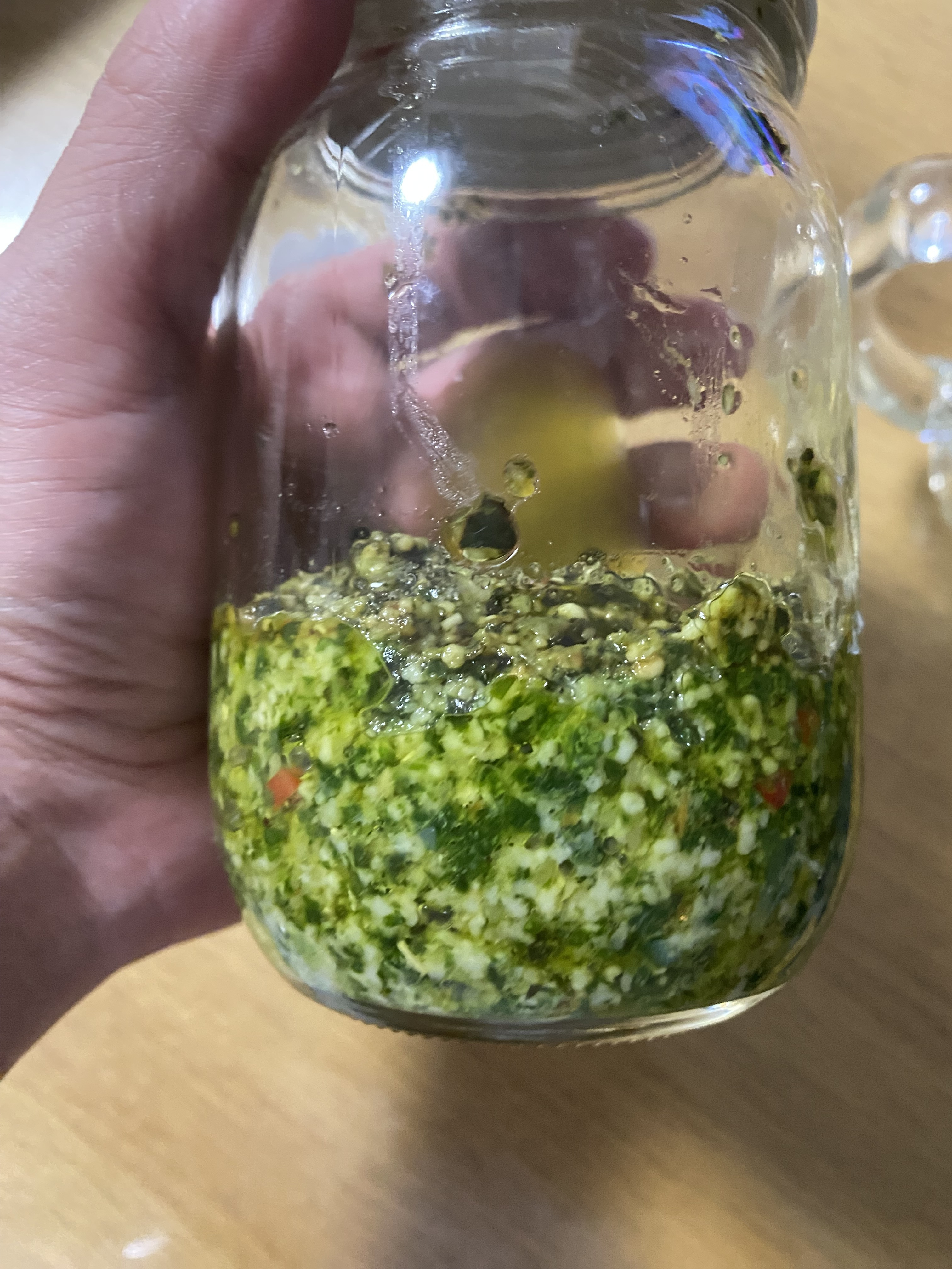 トップ > たべもの係 > ジェノベーゼ がー 2025/10/22 07:47 ジェノベーゼ バジルが痛んで安く売ってたので。 バジル 2パック 粉チーズ ドサっと 唐辛子 2本くらい ニンニク 2欠片 松の実 一袋 油 ドクドク注ぐ フードプロセッサーで思いっきり混ぜます。 いいね 共有する 共有する X facebook LINE リンクをコピー コメントする 0 件の返信 (新着順)