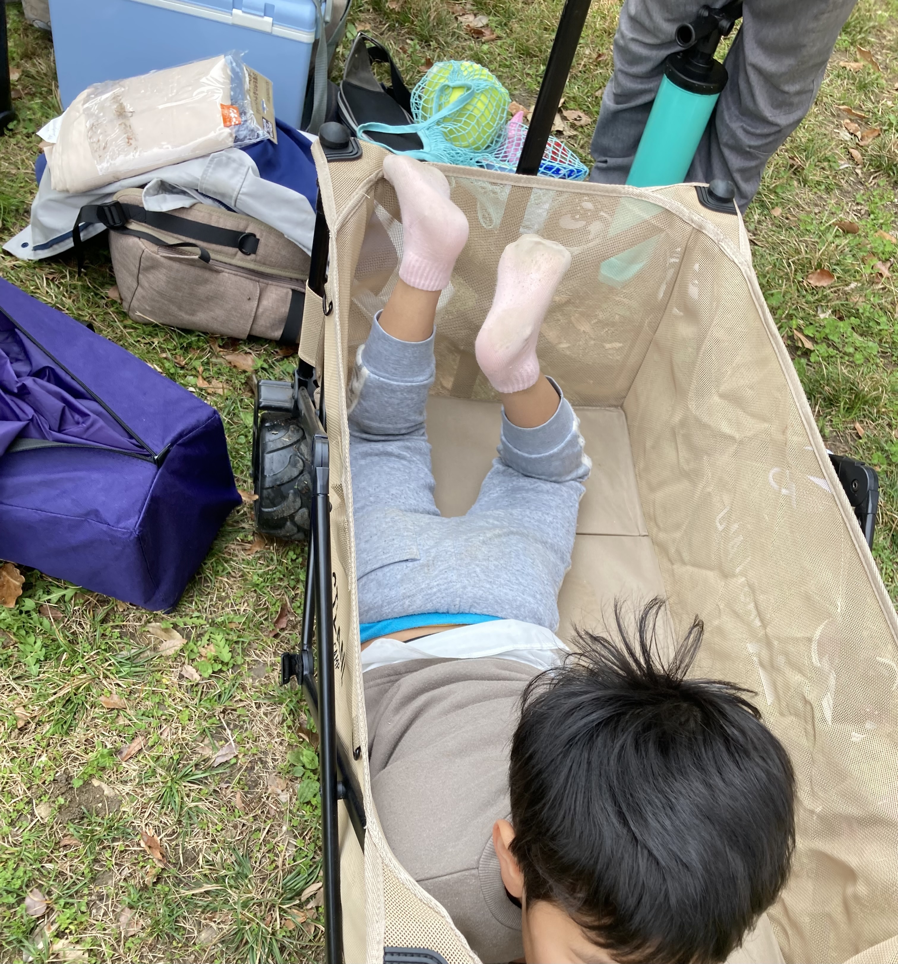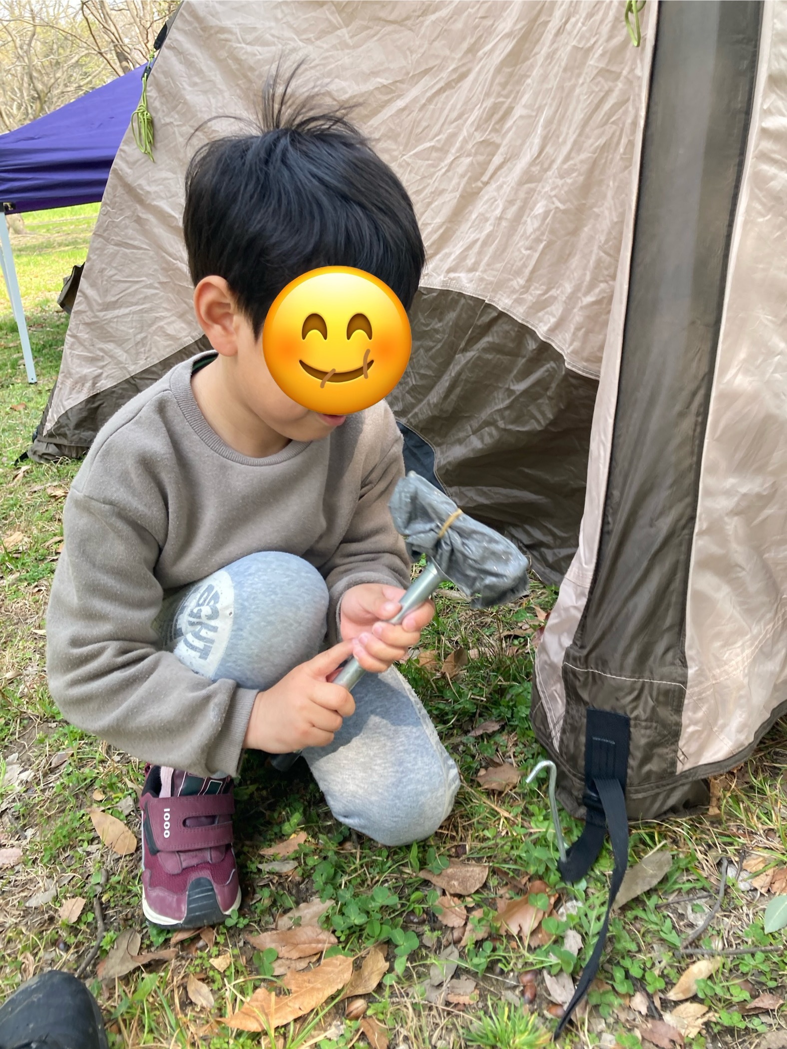 ペグ打ち手伝ってくれた。