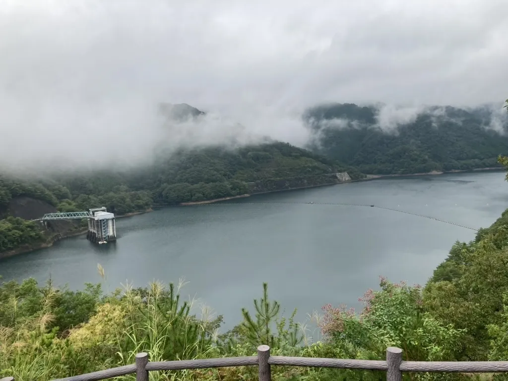 岩屋ダム展望台。名古屋をはじめ東海3県の水瓶だそうです。駐車場横には小さい施設ですが岩屋ダム展示館も。