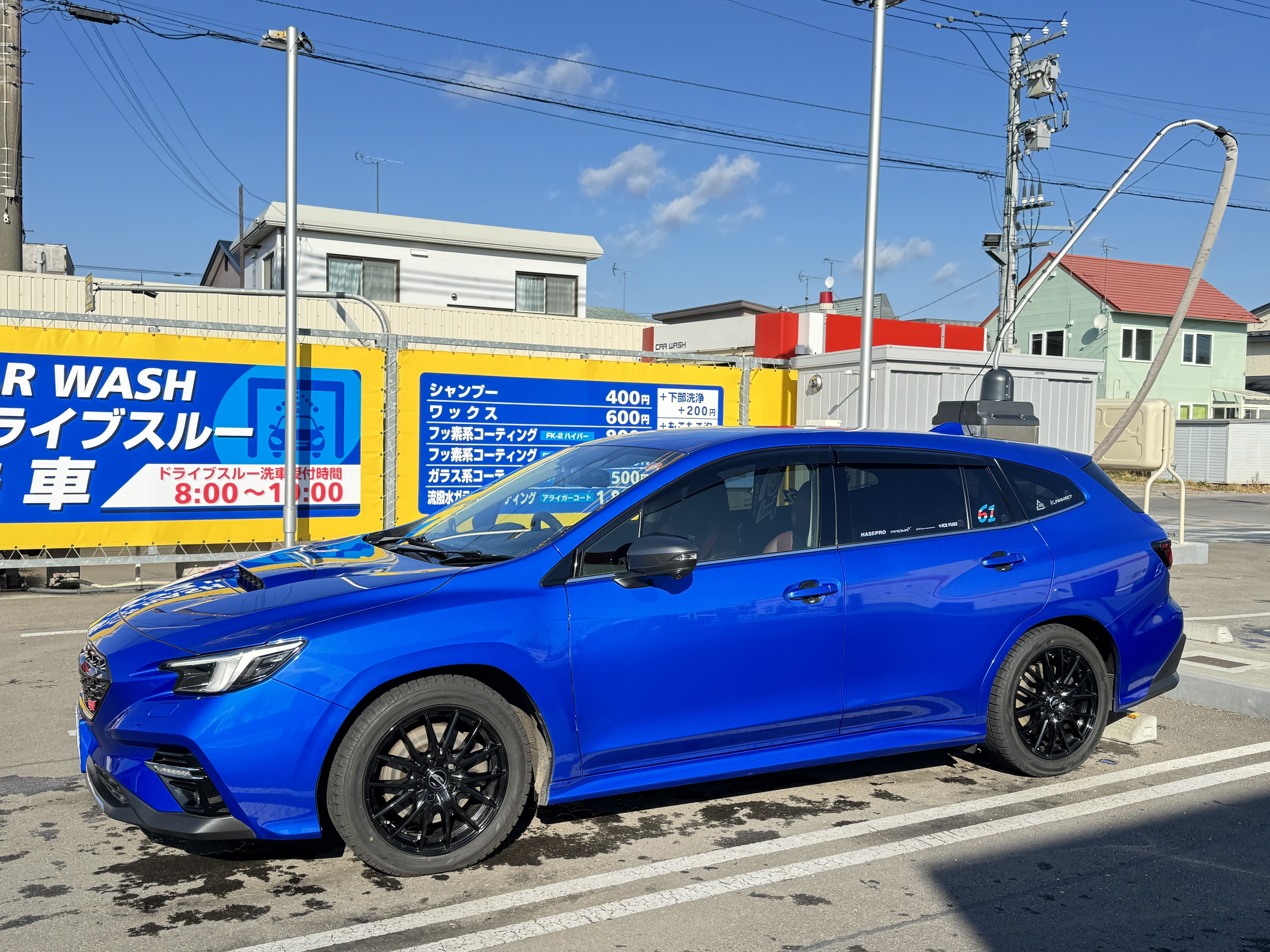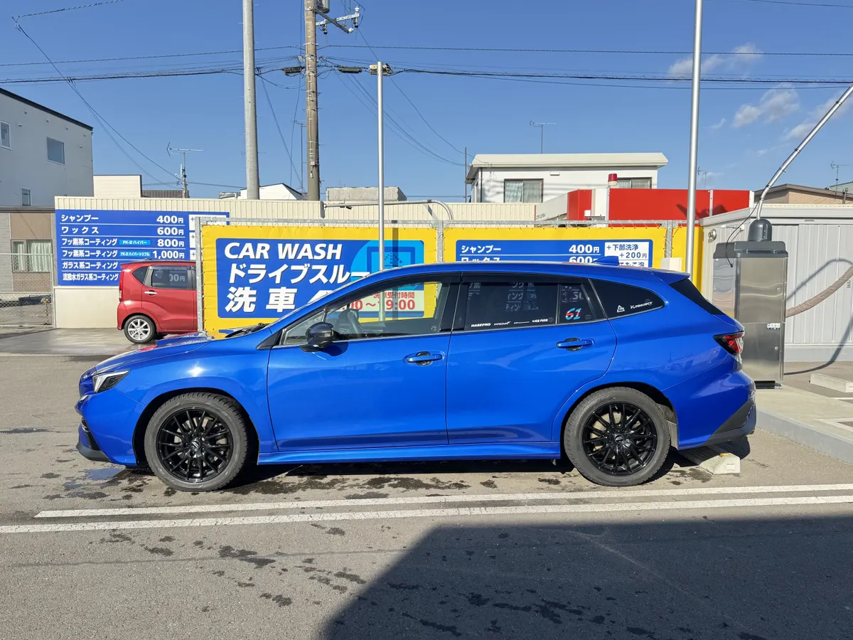 3週間ぶりにガソリンスタンドでレヴォーグをゴールデンウィークまで待たすボディのコーティングを行う為に洗車しました。