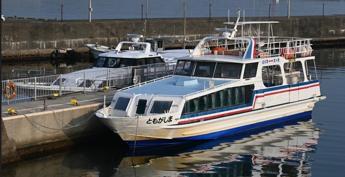 友ヶ島行船乗場で高速渡し船に乗ります。60余名の乗船者がいました。