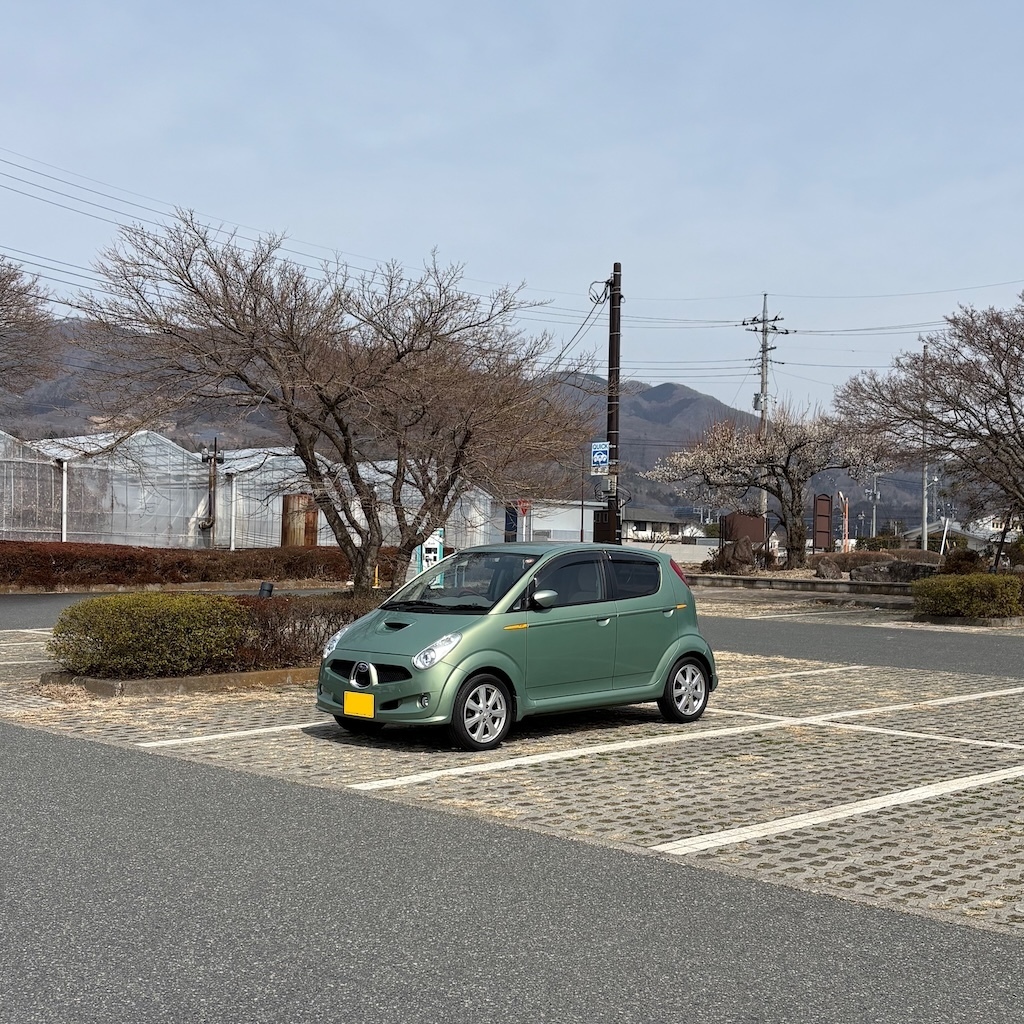 地元の神社。赤城神社です。ここで年越ししたこともあります。その時はR1での旅でした。雪が降って風情もありました。ちなみに、この温泉街のとある宿の車はR2です。別な宿はステラ。