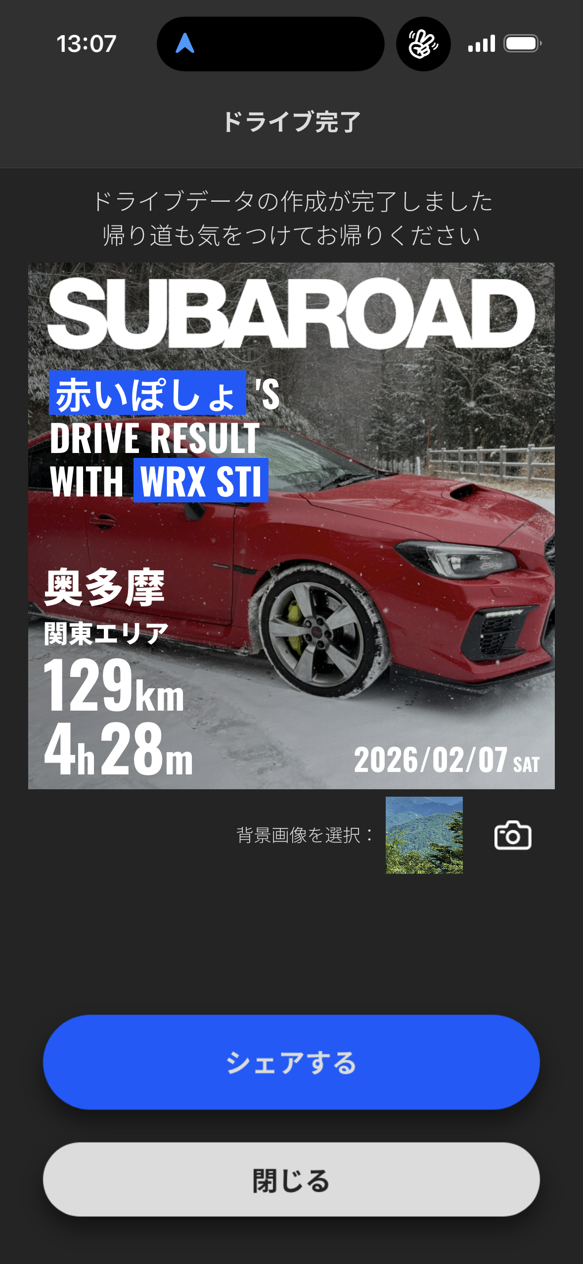 スバロード奥多摩です。