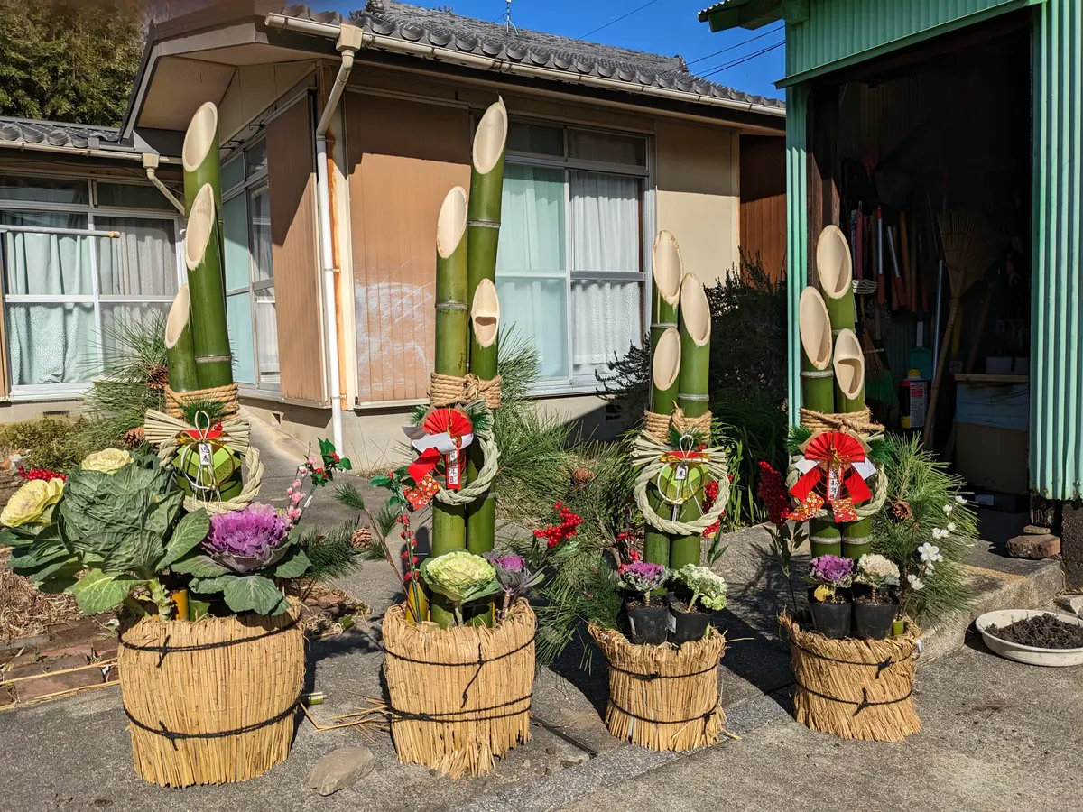 トップ > スバ学ギャラリー > 門松を作りました あきちゃん 2025/12/29 16:54 門松を作りました 毎年、裏が竹やぶなので、門松を作っています。 昨年は、姉家族の分も作りました。 暦年作品 いいね 共有する 共有する X facebook LINE リンクをコピー コメントする 1 件の返信 (新着順) ミュートしたユーザーの投稿です。 投稿を表示 あきちゃん 2025/12/30 10:28 飾りが少ないので、松の枝や花を追加しました。 いいね 返信する