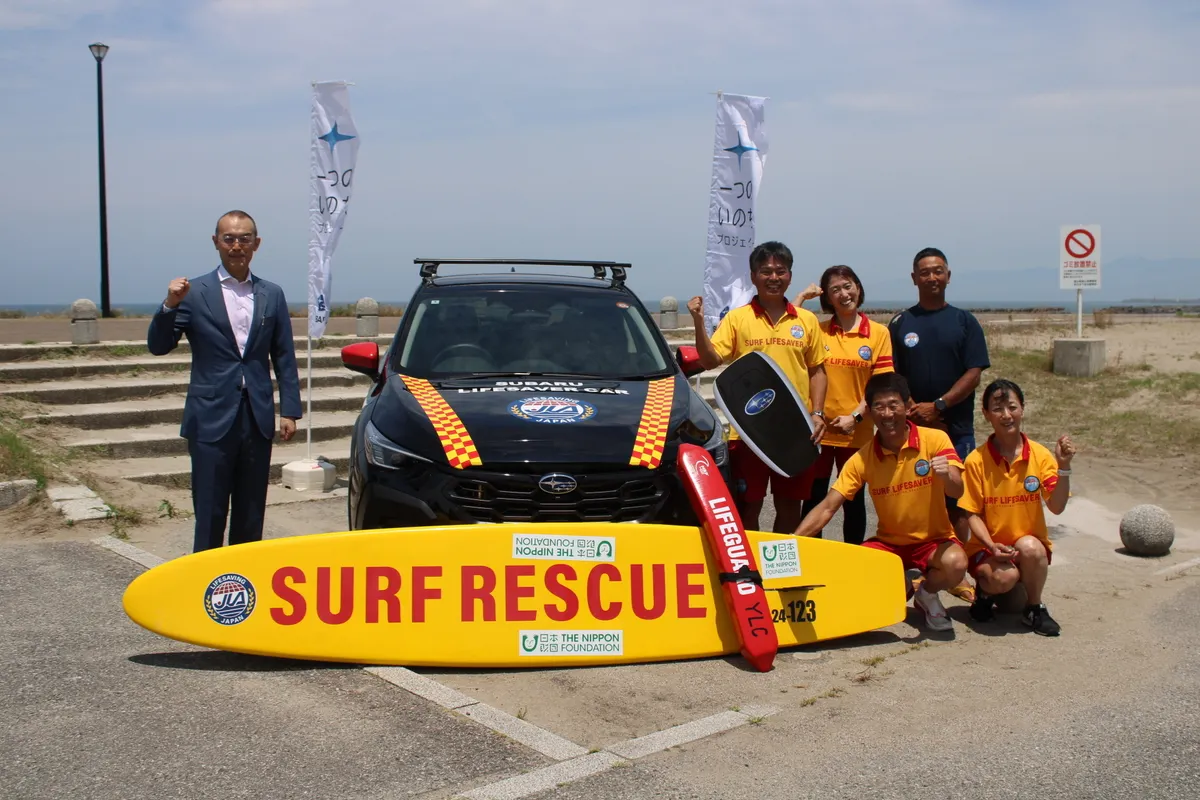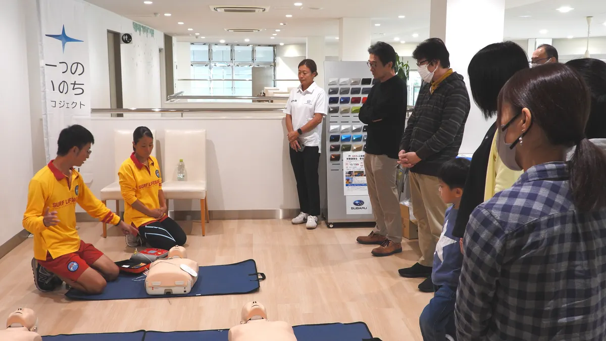 当グループは、2020年から日本ライフセービング協会へライフセーバーカーを提供し、水辺での監視・救助活動をサポートしています。またライフセーバーと共にお客様向けのAED・心肺蘇生体験講習会を実施しました。