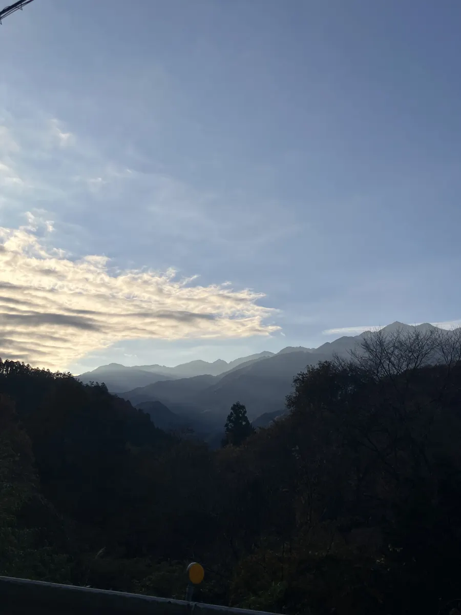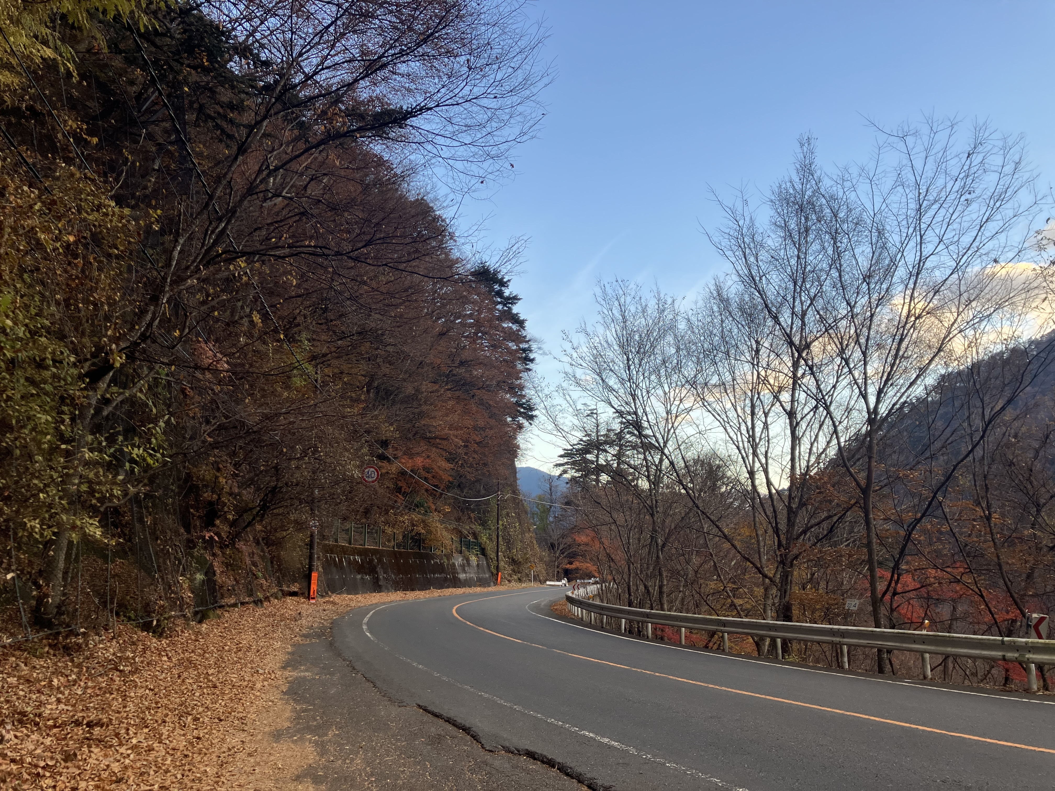 ひたすら落ち葉舞う道を降ります。朝日が届き始め周りの景色も見えて来ました。残っている紅葉🍁を楽しめました。他でも書きましたがループ橋は一部凍結してました。ズルッと来て一瞬😱 山を舐めてはいけませんね。