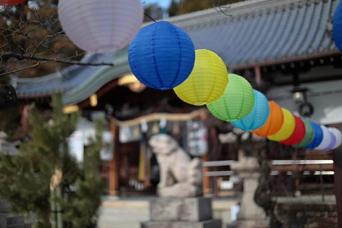 手前の青い提灯を主役に据え、奥に向かって色が滲んでいくボケの階調を表現。神社の伝統的な風景の中に、現代的な色彩感覚を取り込もうと試みました。