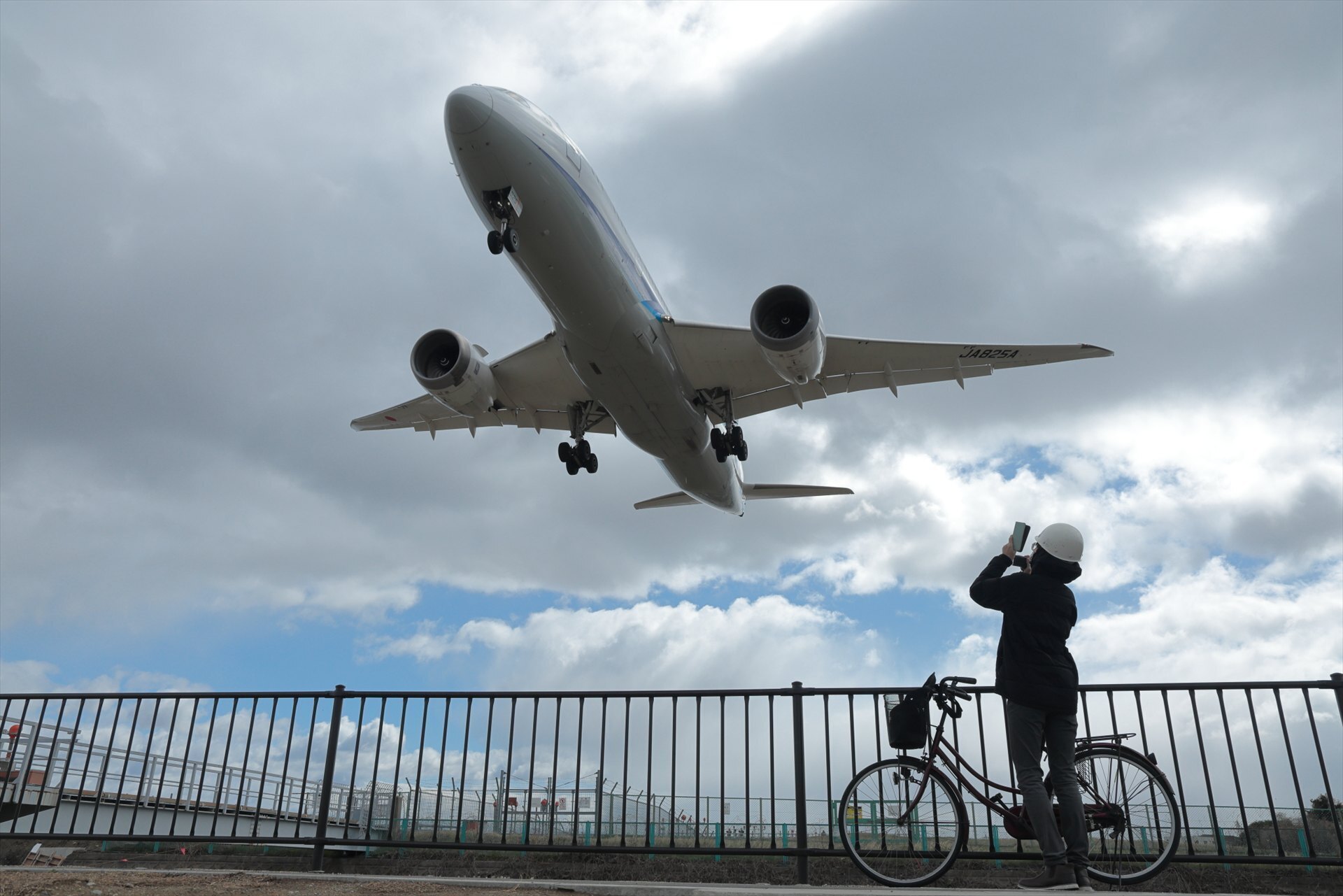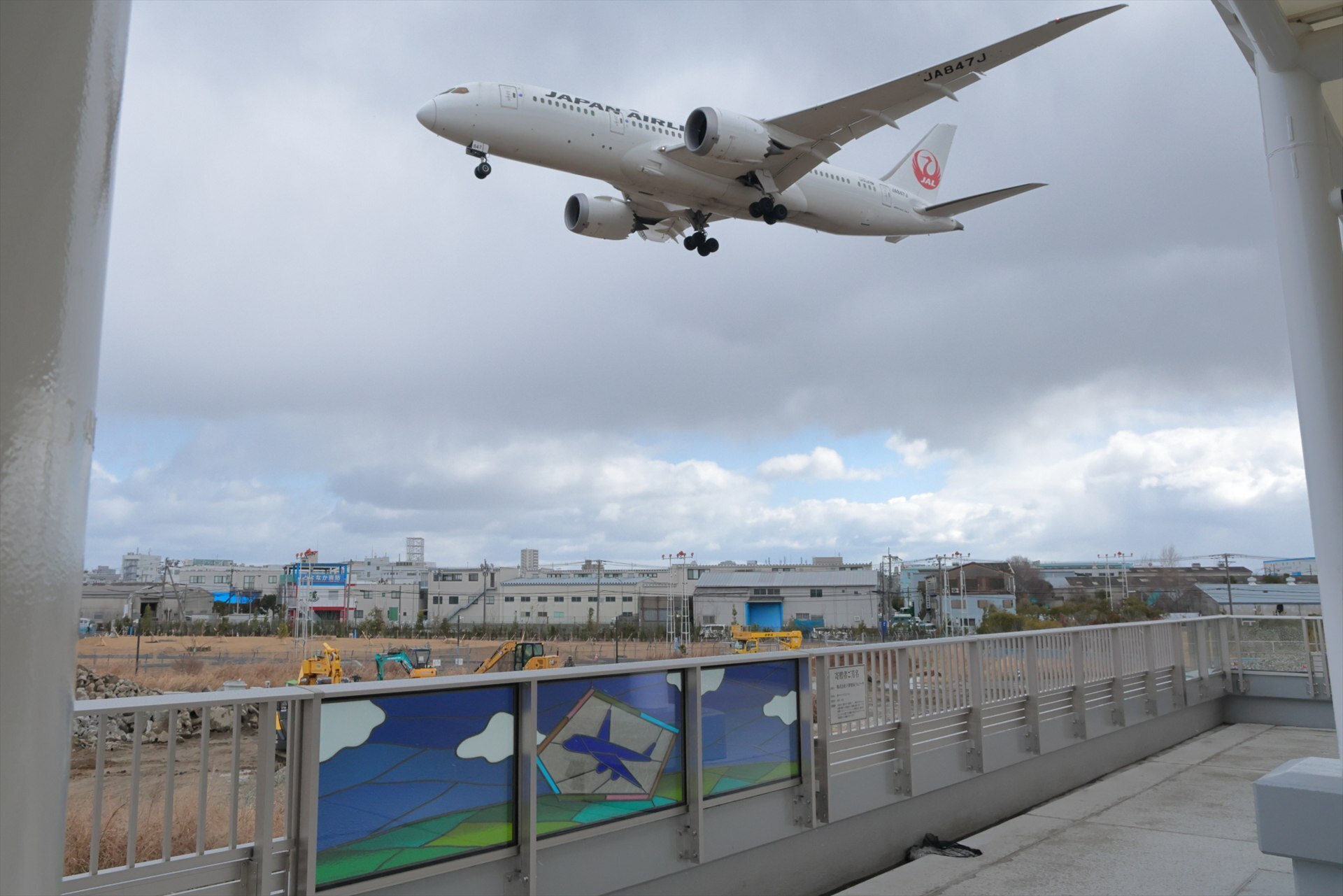 2. ここは真上を飛行機が降りてくる場所なんです。二人の再会を祝福するようにANA機が降りてきてくれました。