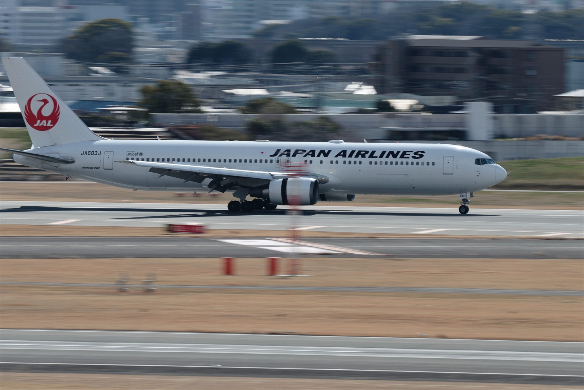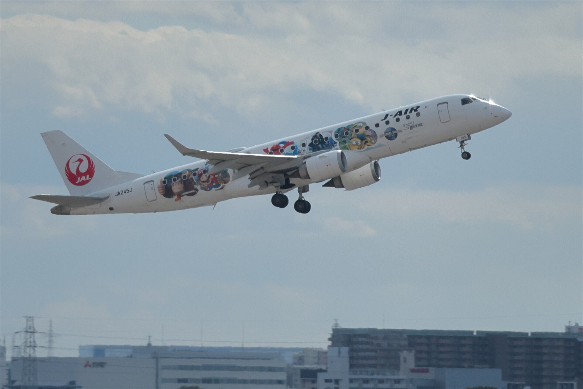22. 離陸していくUSJペイントのJAL。この機体カラーも人気なんでしょうか。