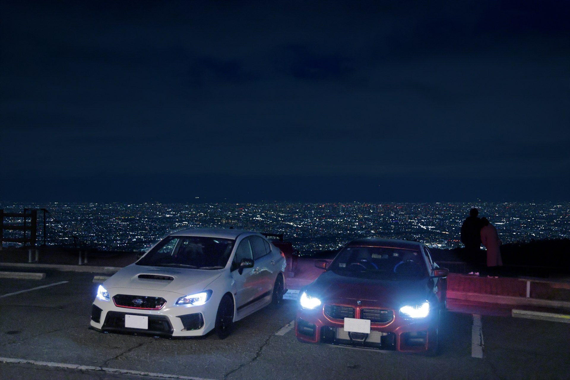 27. 陽が傾いてきたので、互いのクルマで試乗会。M2はジェントルな振る舞いもでき、いざ踏み込めば猛獣へと変貌する。そんなオールマイティなクルマだなぁと感じました。まっくろさんもスバルの歴代EJ20エンジンに乗ってきておられるので、私のWRXのバランスドエンジンには「これが同じEJ20か!」と驚いておられました。