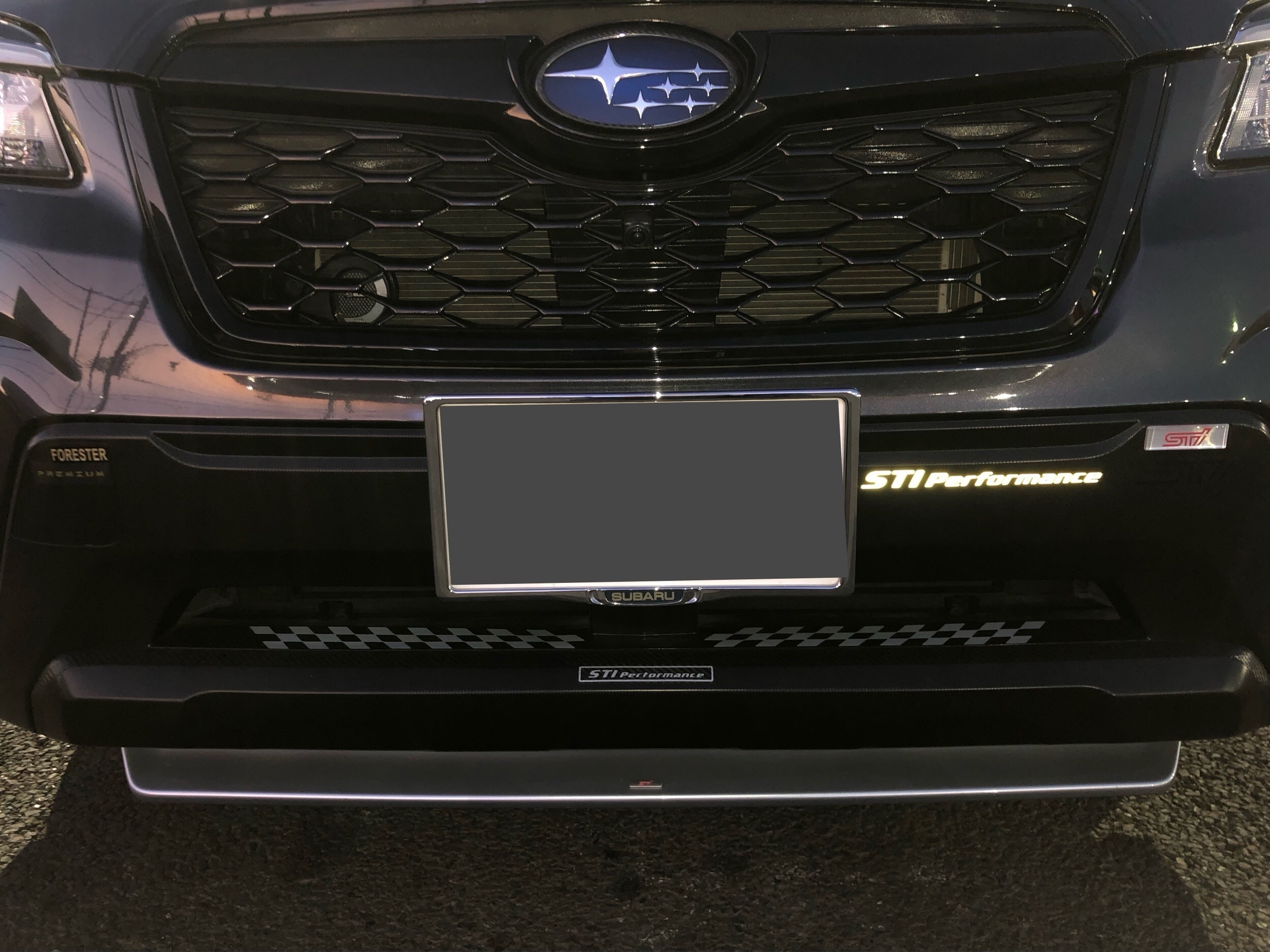 フロントバンパーに光るステッカーを貼り付けました。イメージ通り、昼間は目立たず、夜間は光ります👍