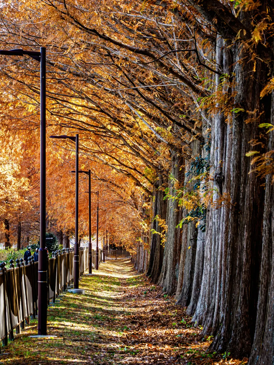 加須市にある「加須はなさき公園」のメタセコイア並木です。