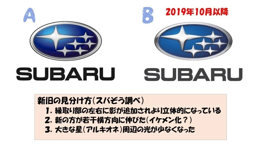 立体SUBARUマークは2019年に微妙にマイナーチェンジをしており、スリム化&立体感UPしていました!