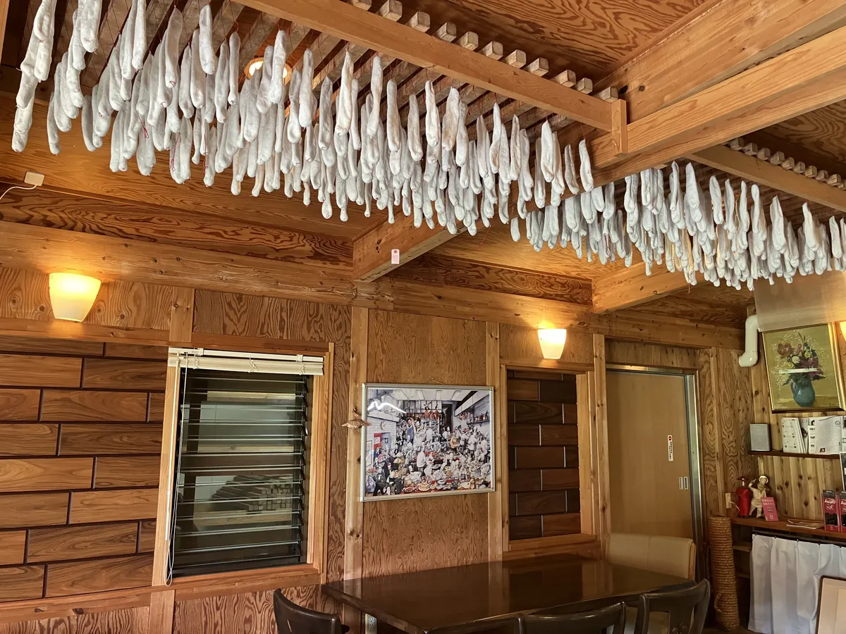 ▲白カビのソーセージが吊るされています。