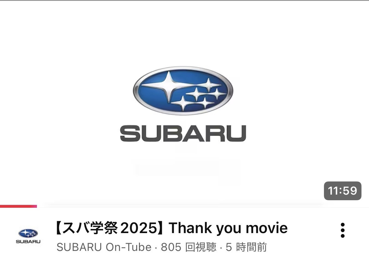 SUBARU On-Tubeでスバ学祭の動画が公開されました。