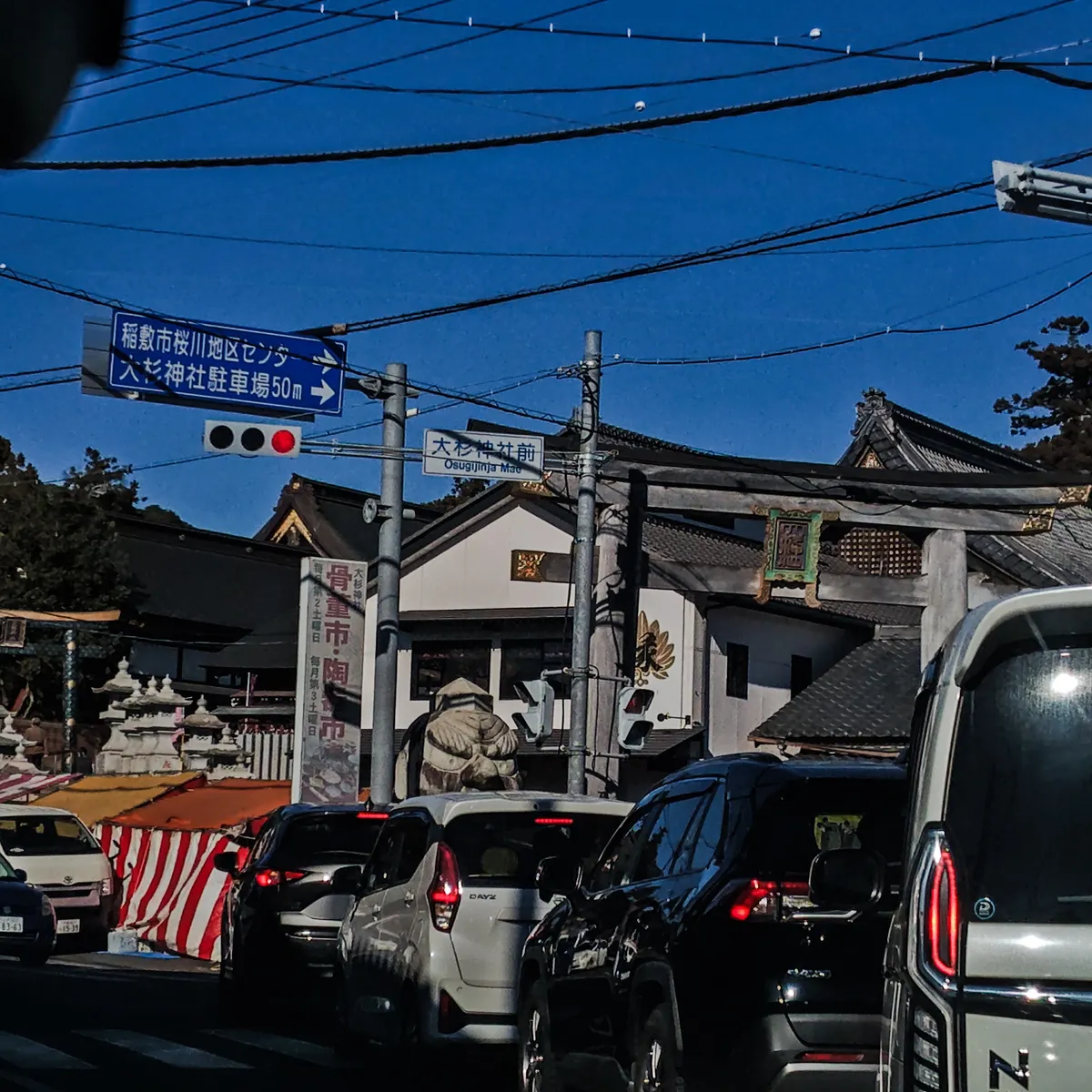 出発して次のポイントは大杉神社なのですが、新年明けての三連休で天気がよいとあって、大渋滞。。。