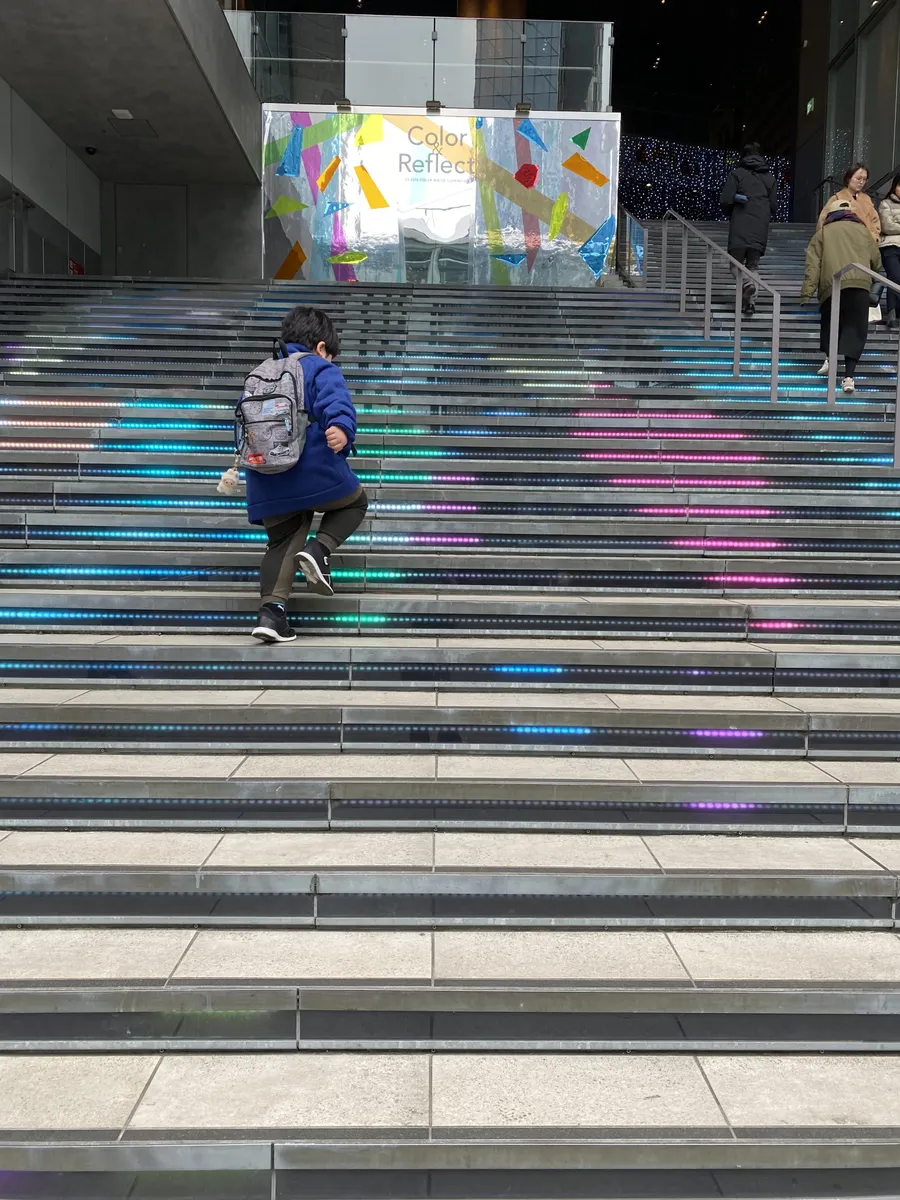 でも寒くても次男は階段大好き!