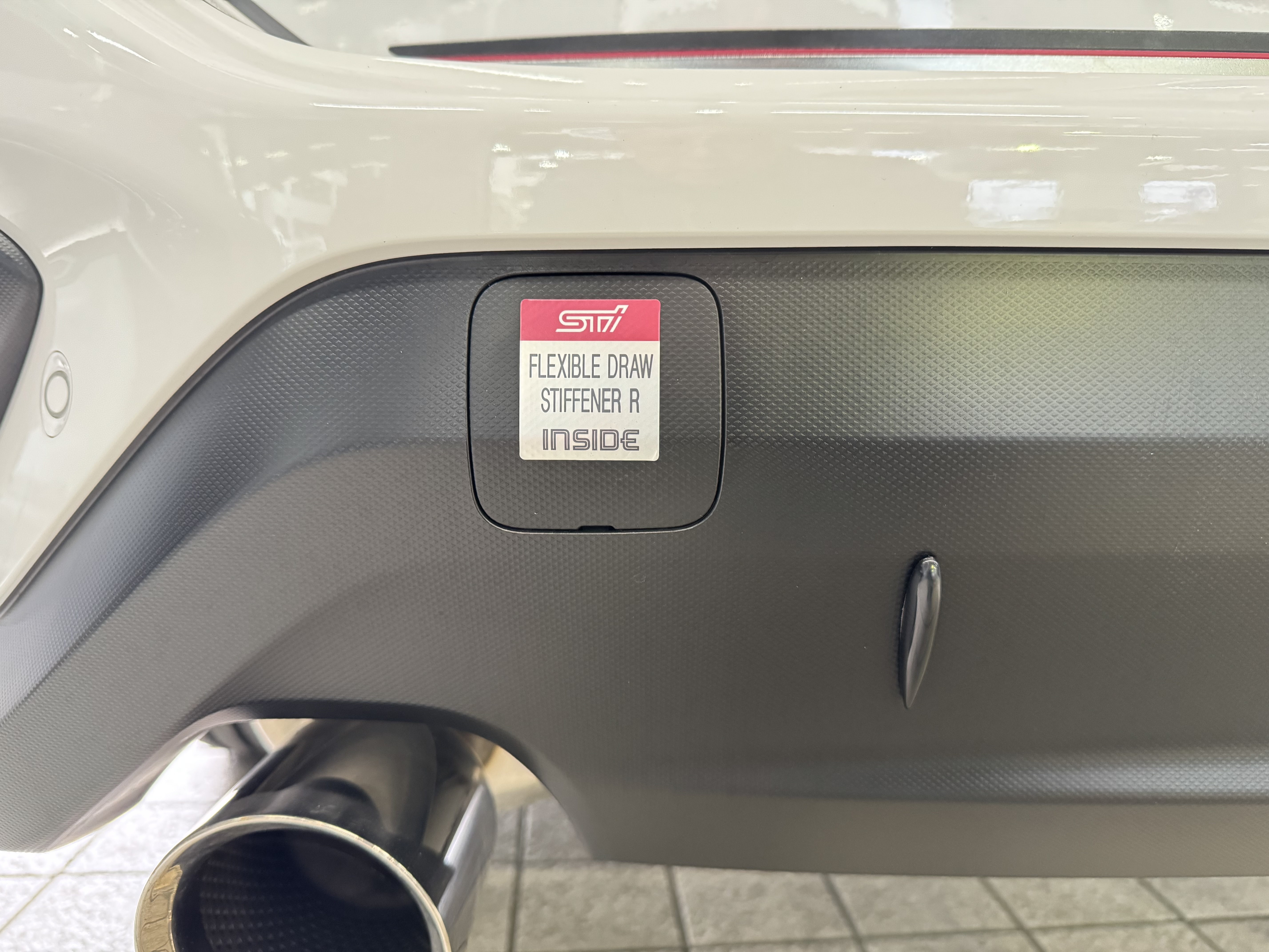 そしてリヤのドロースティフナーはリヤバンパーの中に隠れて見えないのでw、装着の証であるステッカーを♪😆
