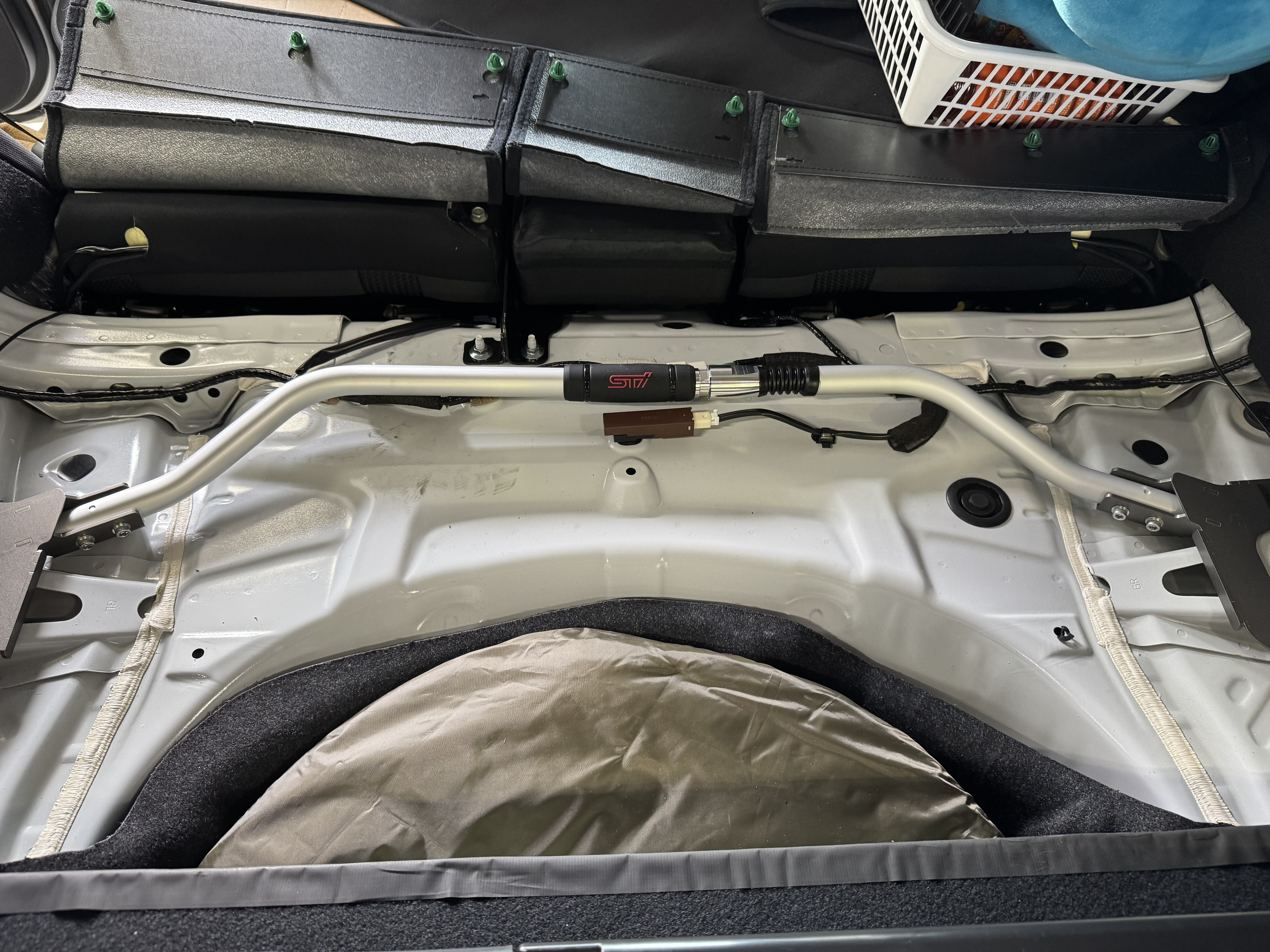 我が家のVNレヴォーグ、納車時にフレキシブルタワーバーは付けたのですが、追加でドロースティフナー前後とフレキシブルフロアバーを装着しました♪😊