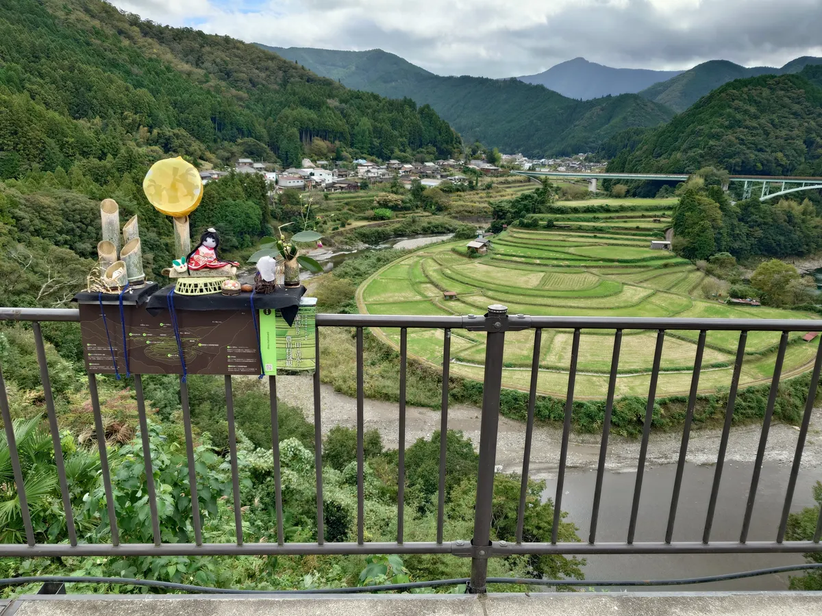 綺麗な景色でした、時期的に悪く春の田植え終わった後、秋の稲穂の景色はもっといいのだろうと覆いました。なんか人形も置いて有りました。