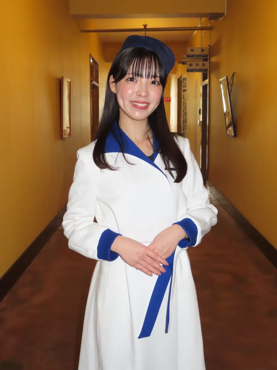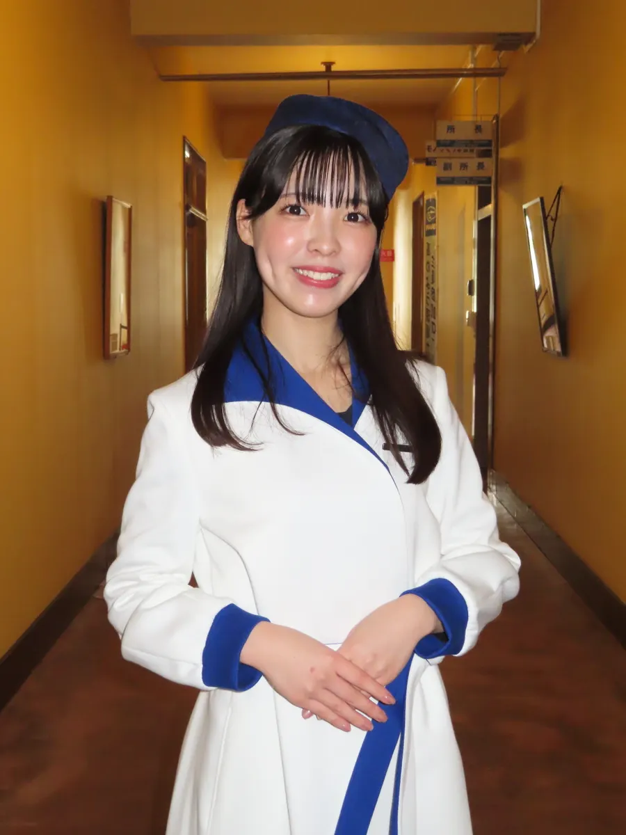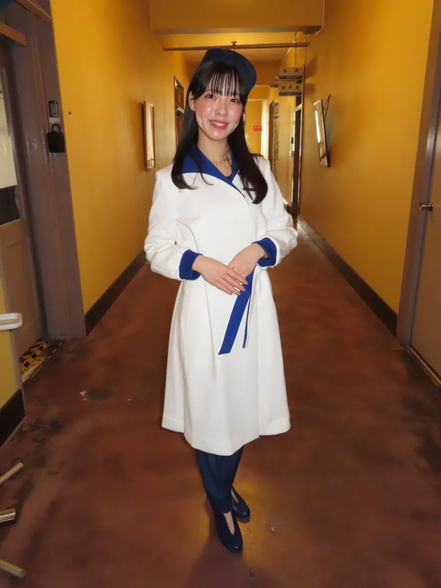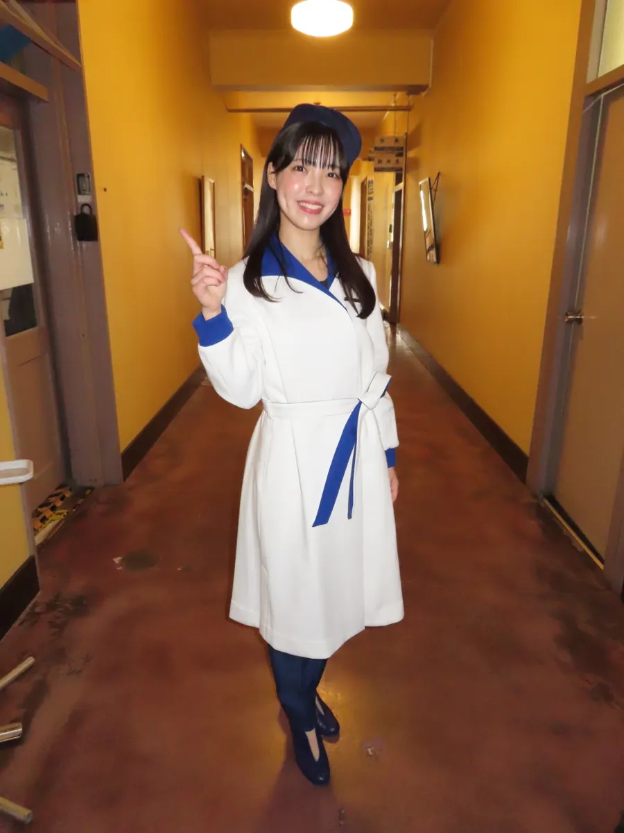 旧中島飛行機本館の廊下を背景にして板垣杏咲さんを撮影