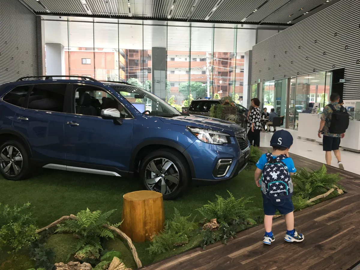 前型フォレスターがデビューした時に恵比寿のディーラーに当時三歳くらいの長男と見に行った写真が残ってました。