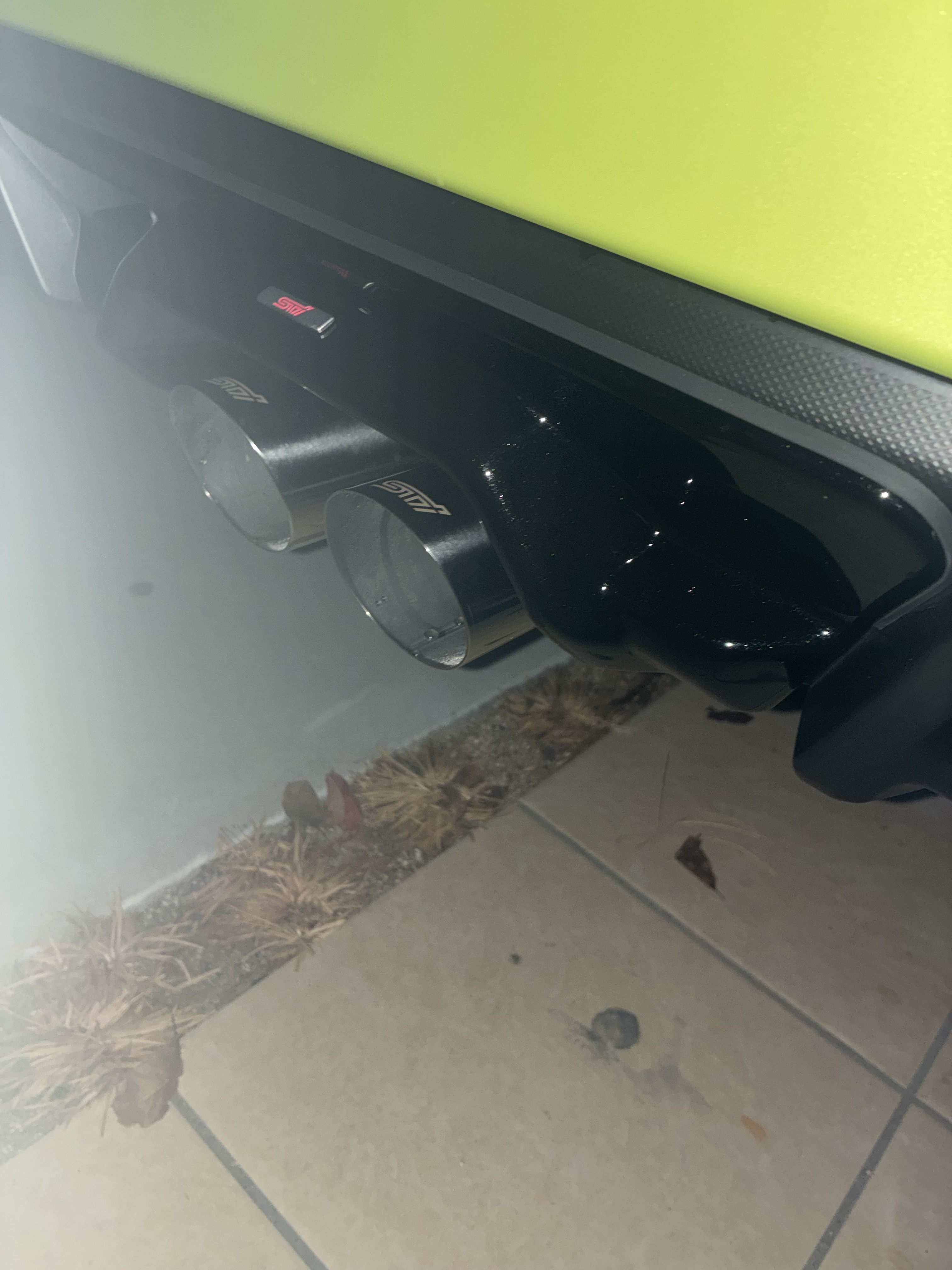 今日ディーラーさんにて、STIパフォーマンスマフラーを取り付けて頂きました!センター二本出しがインプちゃんに合ってて最高ですね😊ドレスアップ効果もしっかりありました。