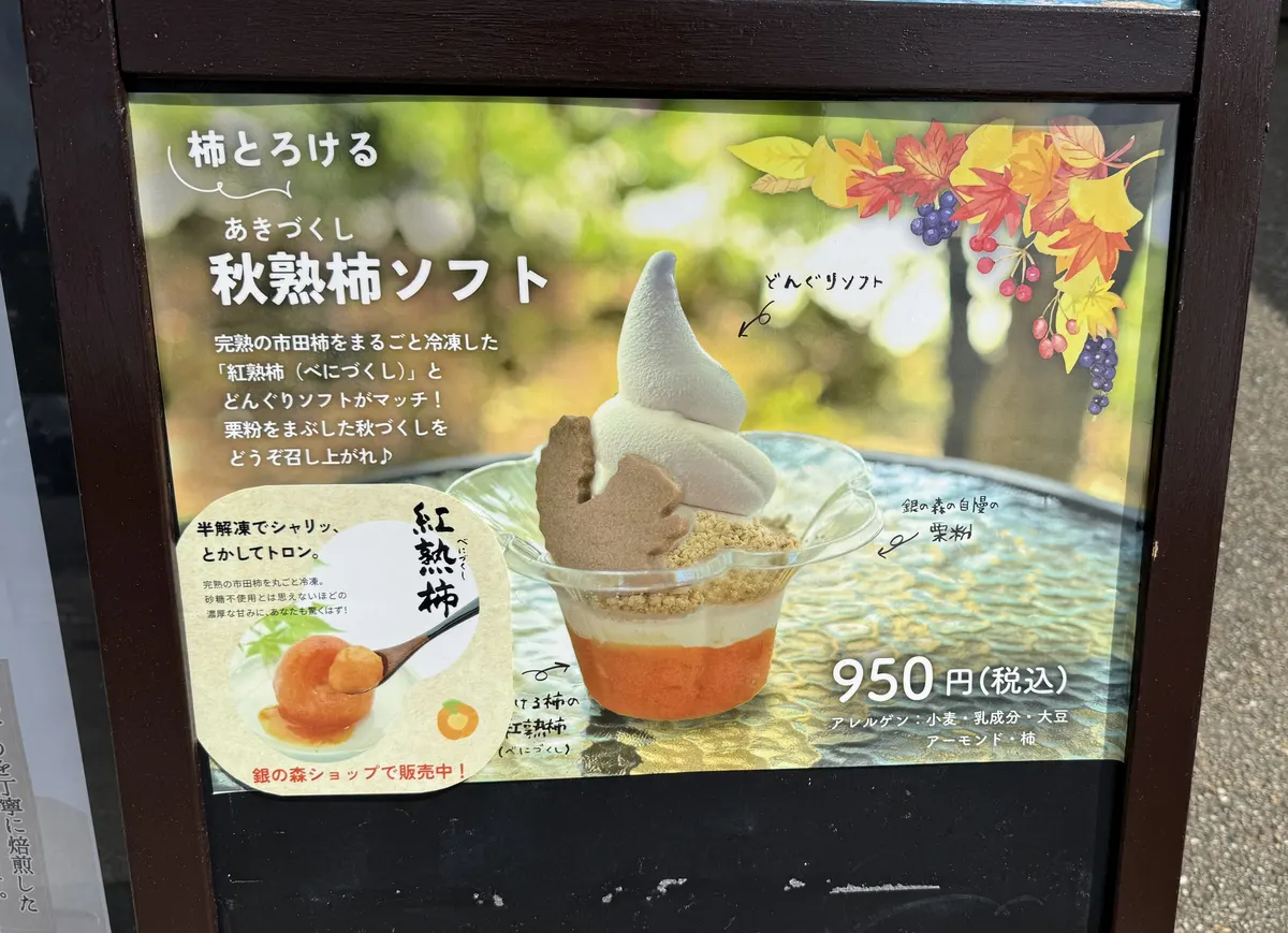栗粉は栗感が楽しめて、ソフトクリームの下にある柿は果肉が楽しめて大満足でした😋