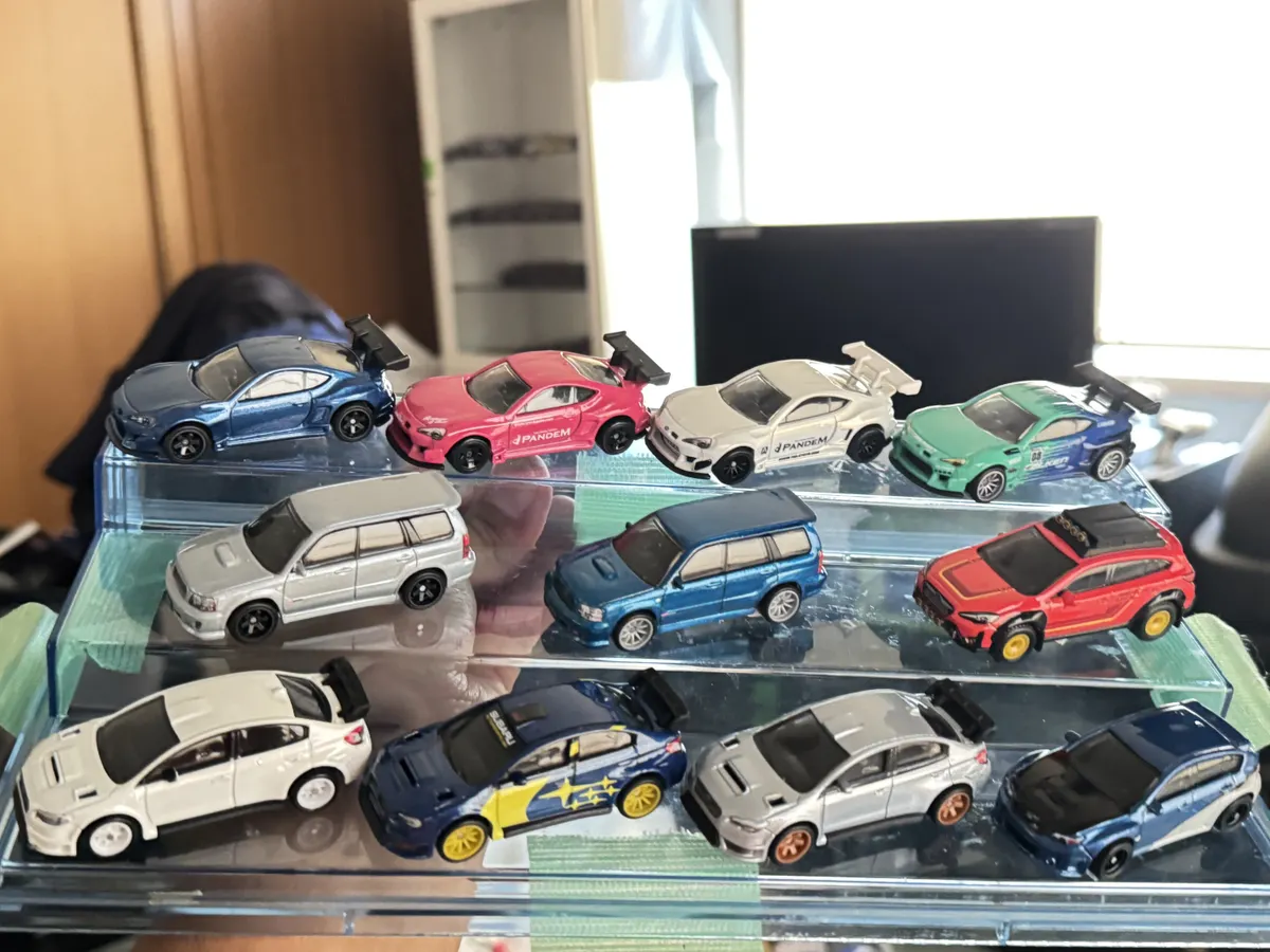ホットウィール展示置場の展示車2台追加と固定の確認を行いました、