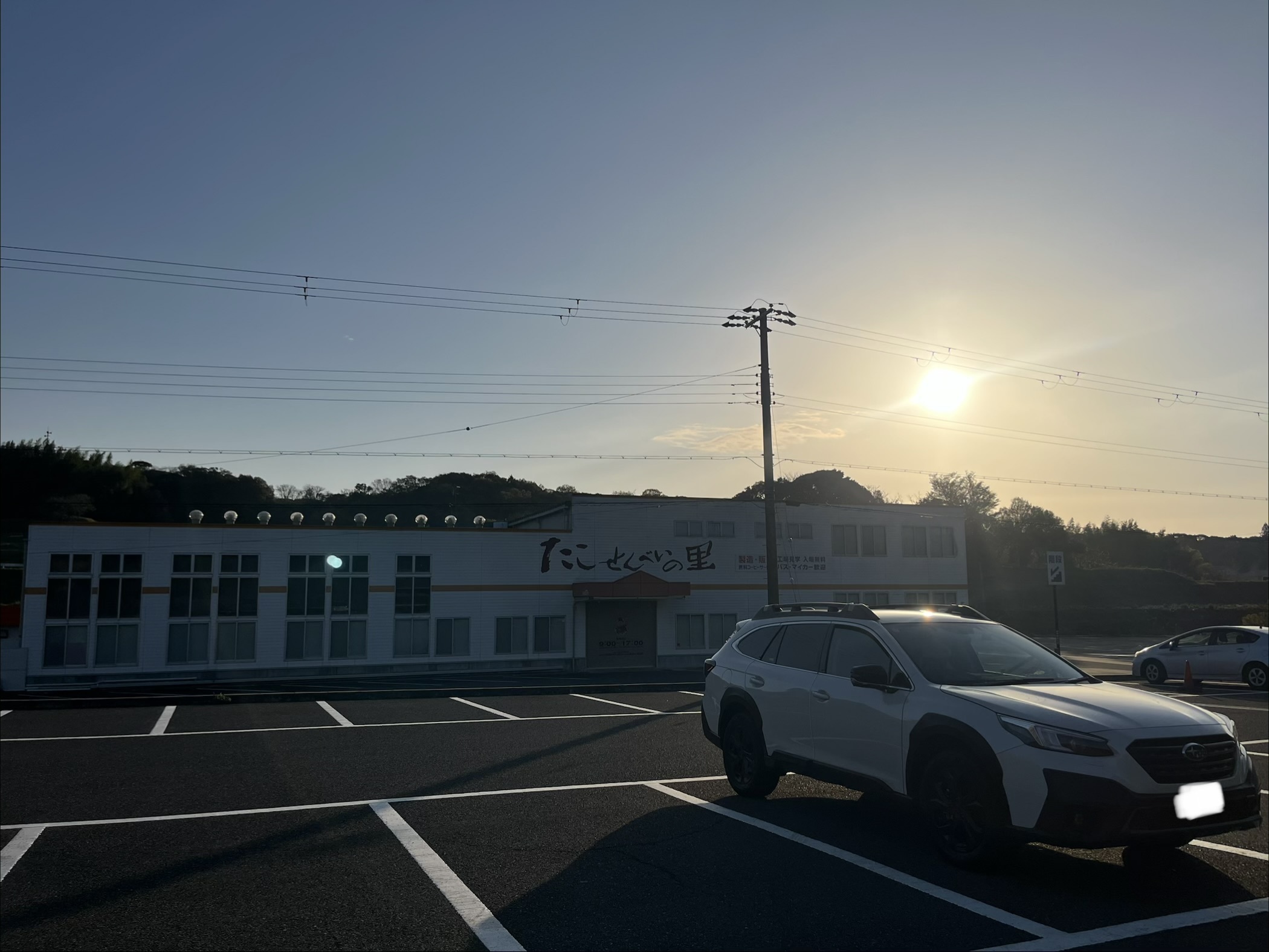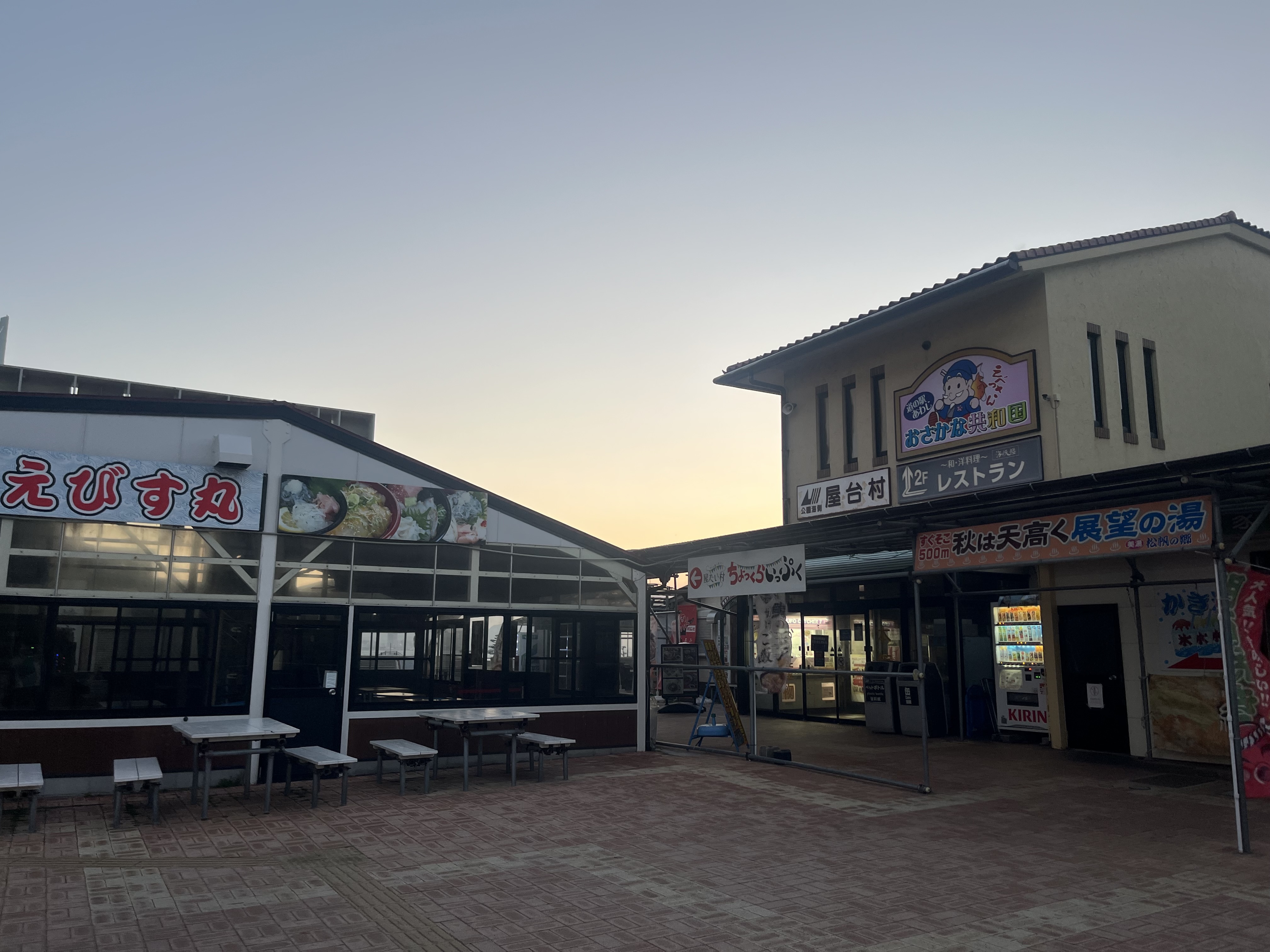たこせんべいの里に到着しました。もちろん営業してません笑。江ノ島のうっすいたこせんべいを思い浮かべるのは僕だけでしょうか、、?