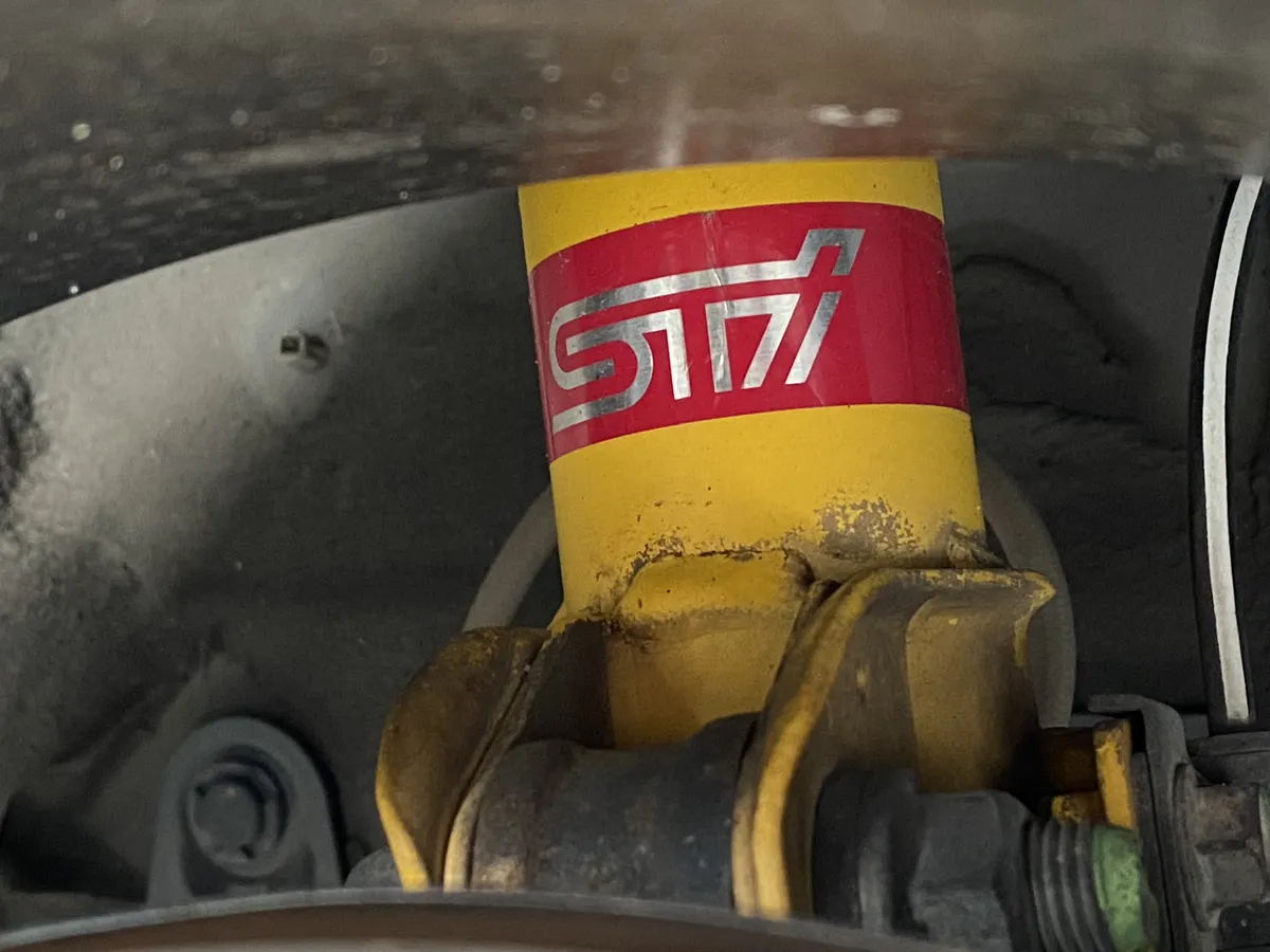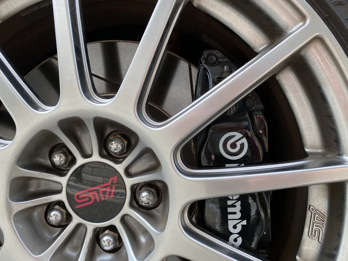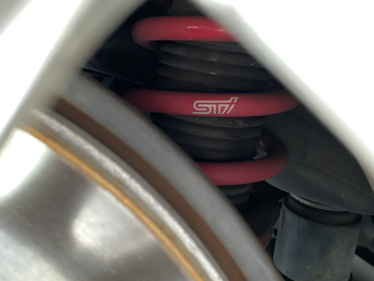 見えにくい足回りにSTIのロゴが良いですね。2006年というともう二回りも前になるんですよね。