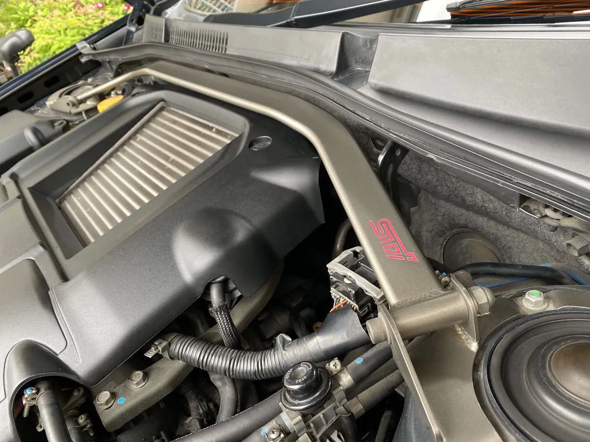 隙間からチラッと見える物や見えない所にSTIパーツが沢山付いています。