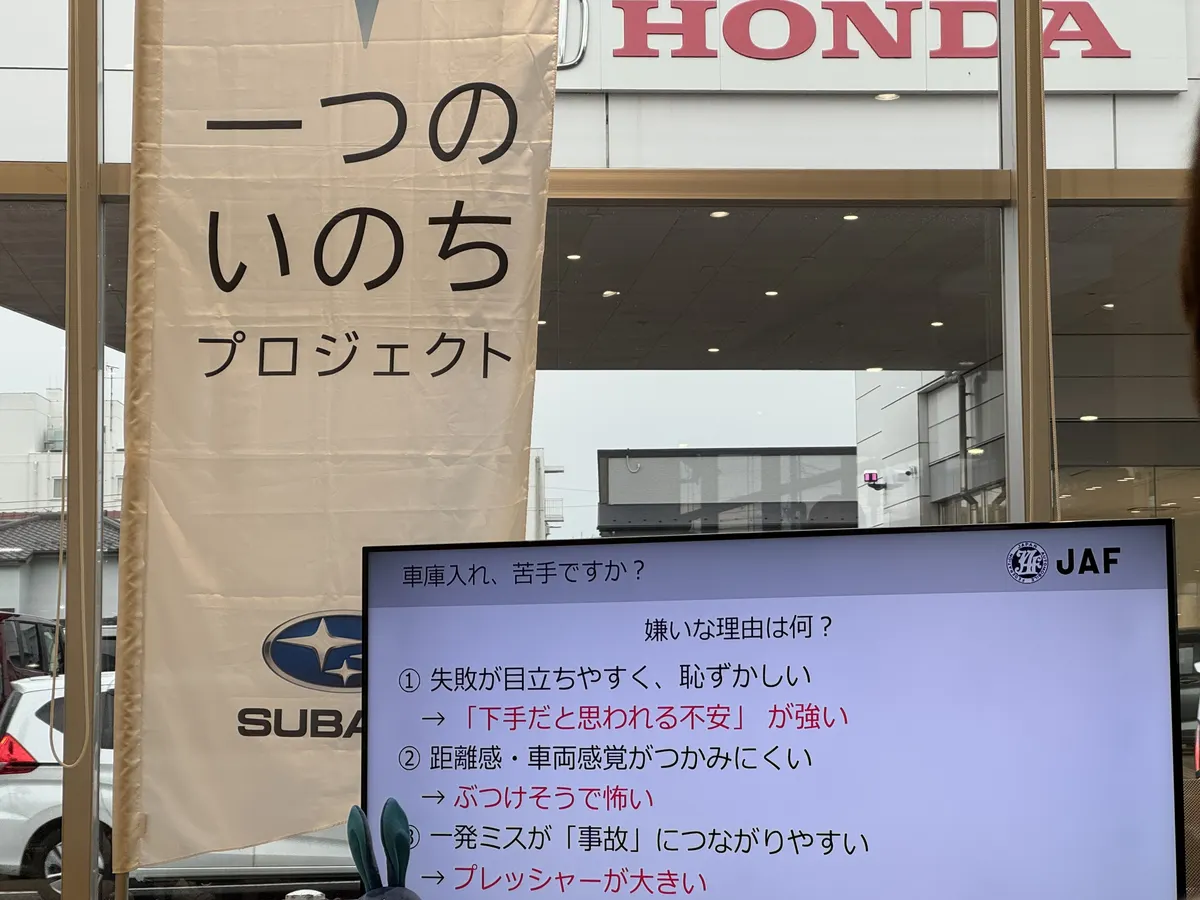 この後はJAFさんによる車庫入れ講座(映像)が行われました。