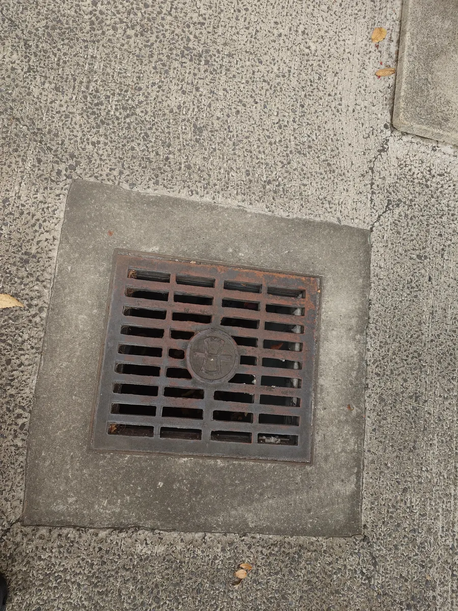こちらが正門の富士重工のプレート、そして中島飛行機時代の側溝のふた。