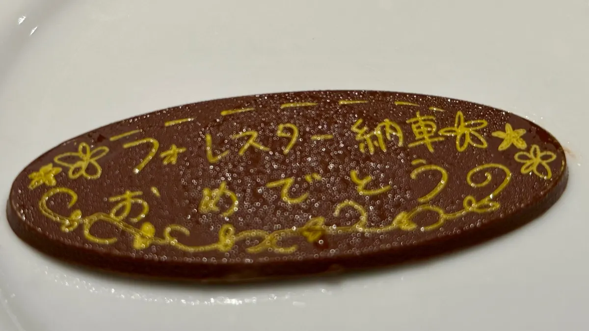EMIさん満面の笑みでメッセージプレートのチョコを頬張ってました😁