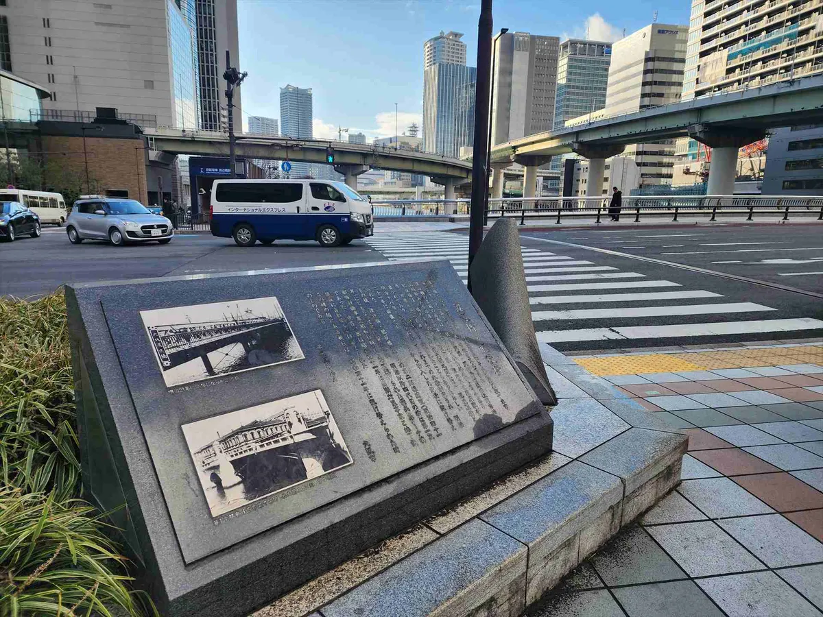 道中、渡辺橋と肥後橋の説明碑が目に留まりました。かつて「八百八橋」と謳われた大阪。今はビルの間を縫うように都市高速が走り、まるで現代の巨大な橋が空を覆っているようです。
