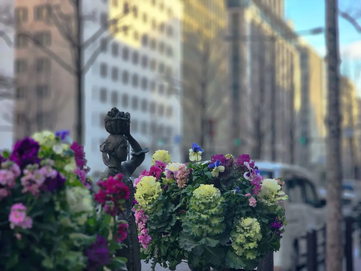 中之島緑道を歩くと、右奥に淀屋橋が見えてきます。江戸時代の豪商「淀屋」が私財を投じて架けたこの橋は重要文化財。