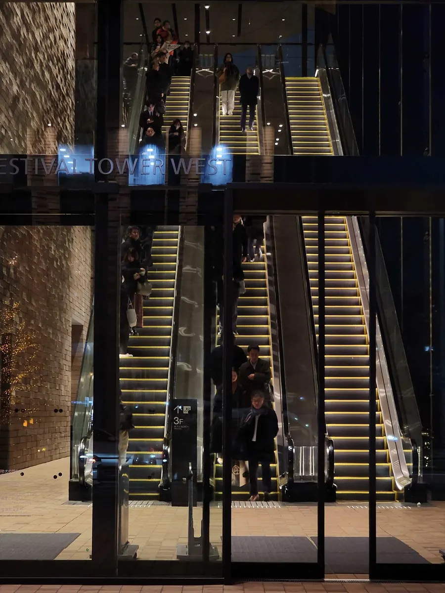 フォトハウスの閉館の18時が近づくと教室に向かいます。この3連のエスカレーター3階まで一気に登るのですが、見た目がおしゃれでちょっとフォトジェニックです。