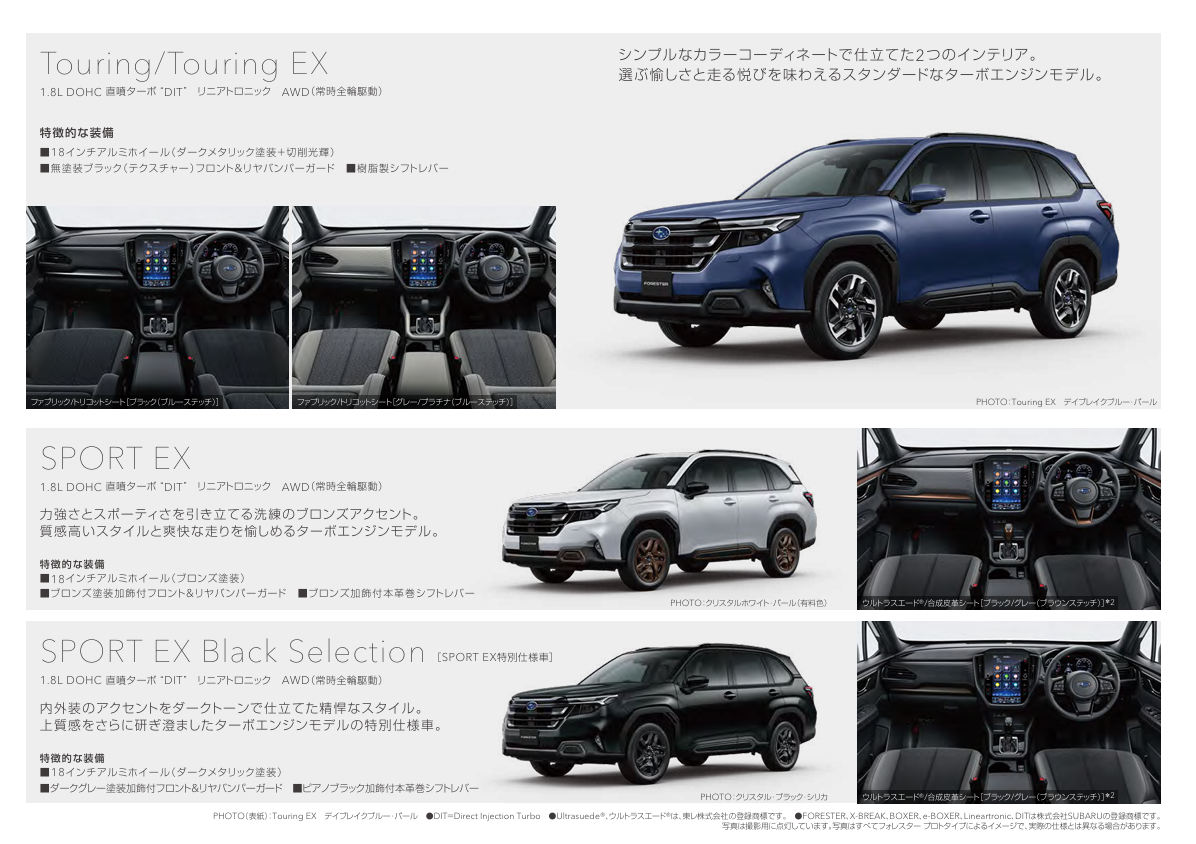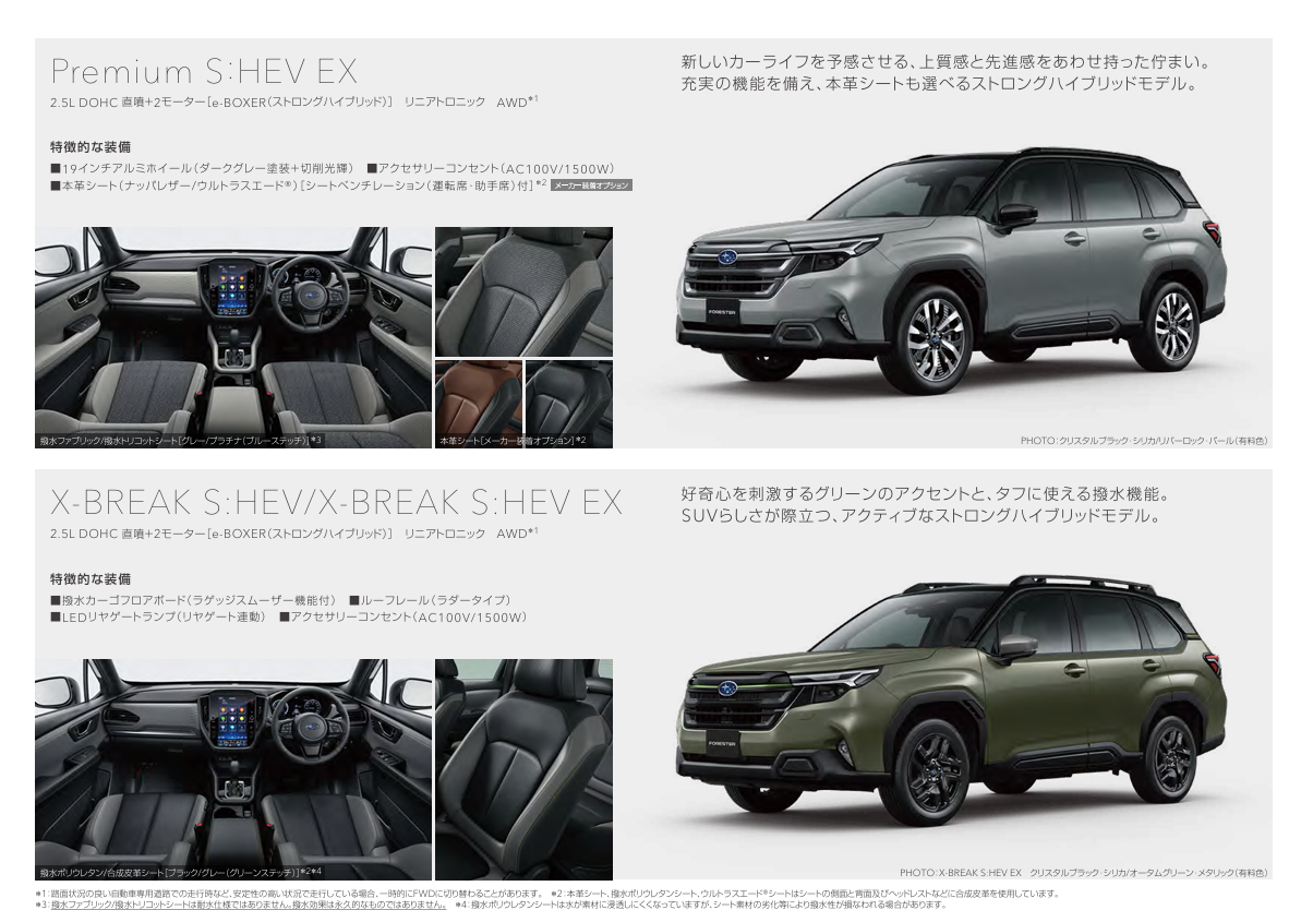 以前フォレスターの公式サイトでC型のツーリングについて色々分かってきたということを投稿しました(https://community.subaru.jp/chats/lch2ekt7igbgdhtf)が、先日プレカタログをダウンロードしたところ、他のグレードについても分かったことがあるので、それについて紹介しようと思います。