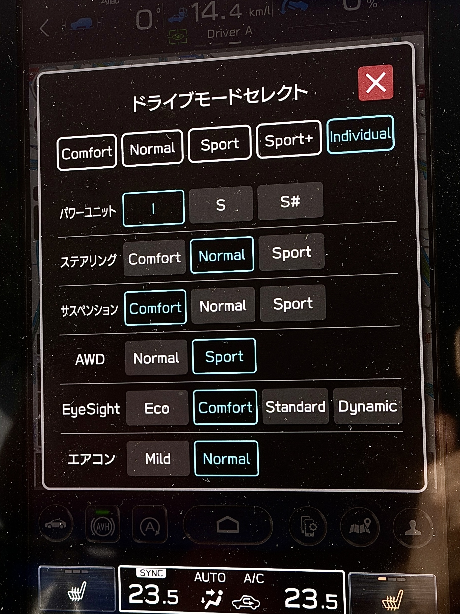 そしてスタッドレスタイヤに履き替えた時にSportに変更していた Individual のステアリングを Normal へ戻しました。