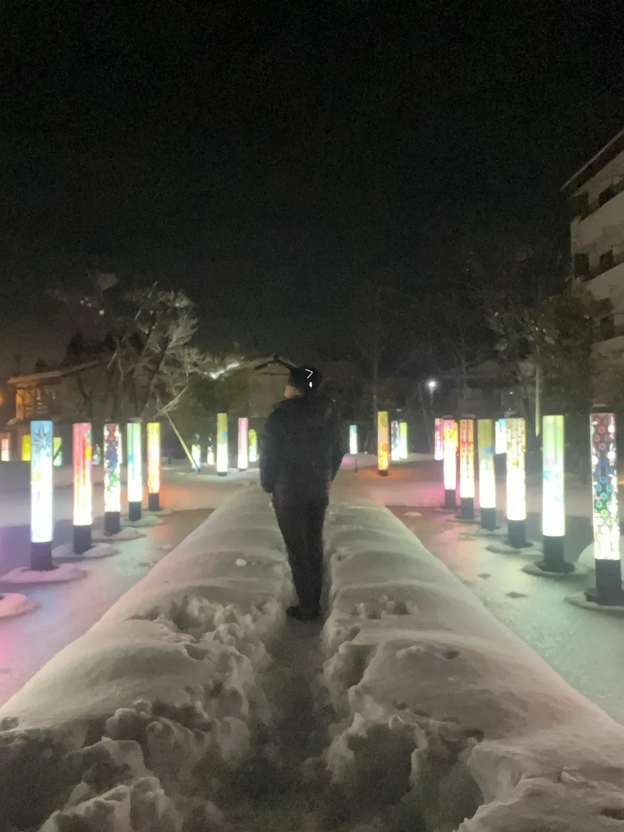 月岡温泉。月あかりの庭がとても幻想的でした✨